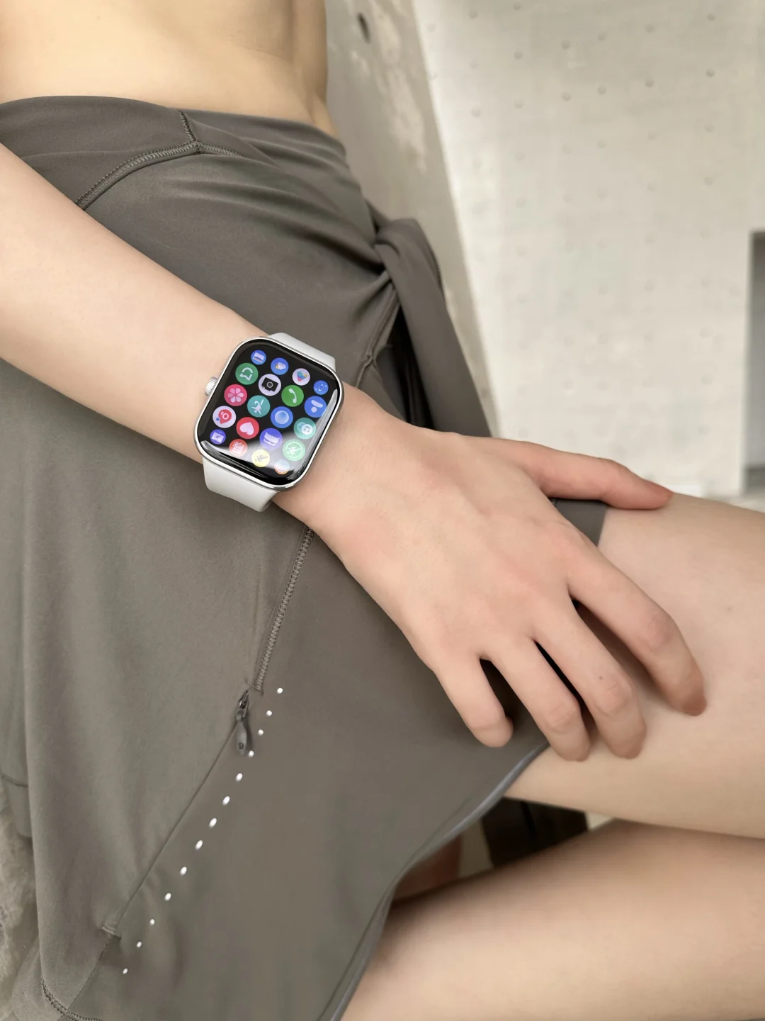 它的极简方形表盘和1.96英寸超大AMOLED屏幕