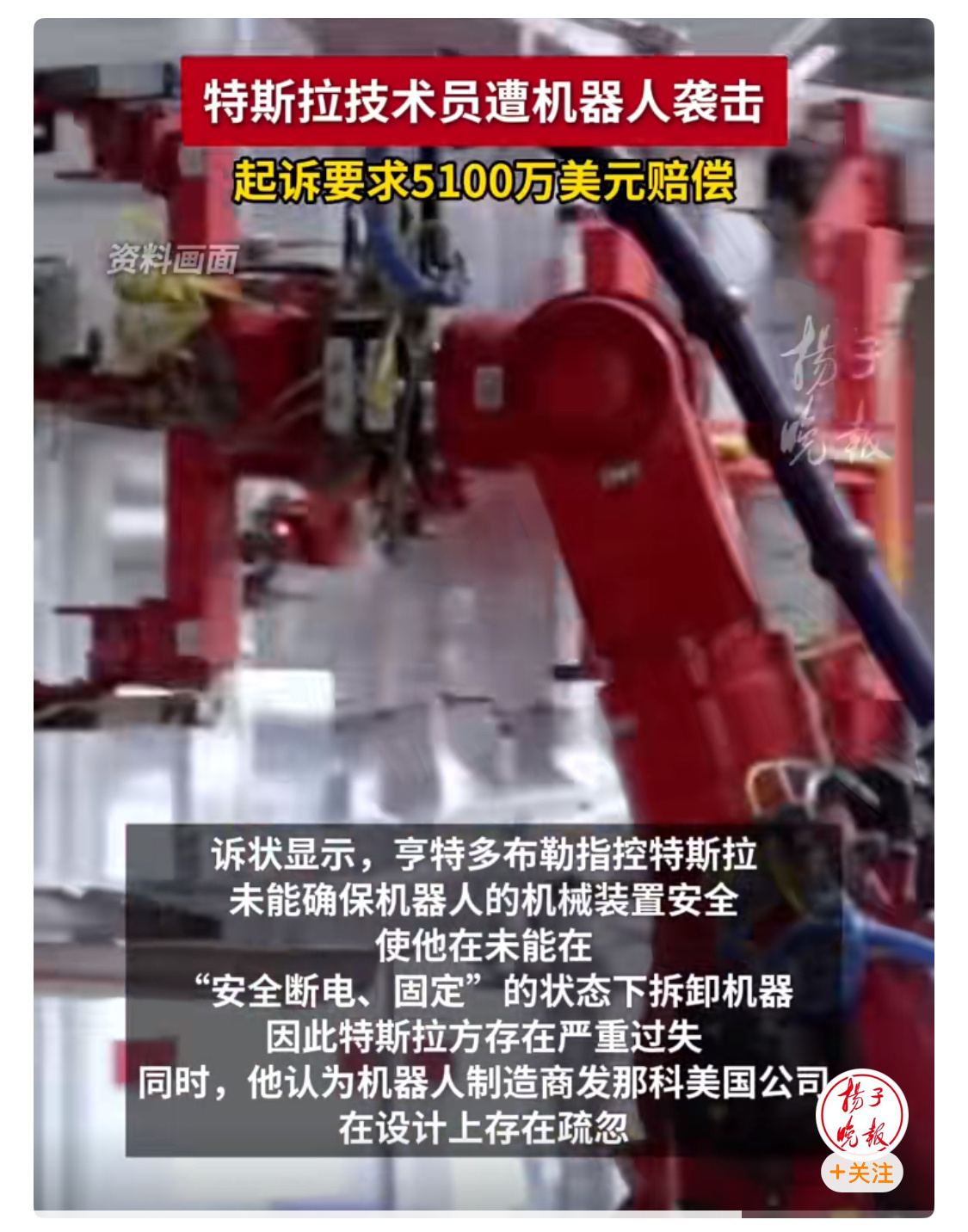 特斯拉技术员被机器人打成重伤预计后续治疗需要600万美元,而当事人提出5100万