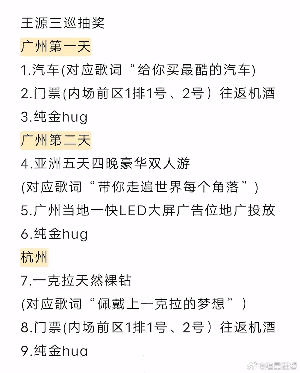 王源[超话]王源三巡送出近百万奖品王源演唱会的门票那个真的太绝了,礼品名单出现