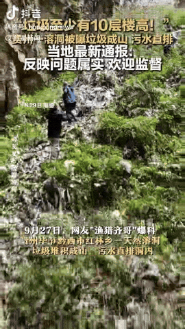 贵州毕节,一男子发现溶洞里面垃圾成山,污水直排,估计垃圾至少有十层楼高,外面的景象更是触目惊心。网友:“不是说垃圾不够用吗?” 信息来源:红星新闻 说来也真是让人想不通,本来想去探险看看大自然鬼斧神工,结果丢人现眼地撞见了一座垃圾山。 洞里钟乳石上贴满了细碎的塑料泡沫,踩一脚,啪嗒啪嗒就碎出一地白点儿,像下雪似的。 “这些泡沫都是塑料分解出来的,”男子心里嘀咕,“也就几分钟能把我呛得够呛。” 他蹲下身子沿着水流往外走,可一出来更傻眼:眼前竟是一座起码十多米高的“垃圾中的珠穆朗玛峰”。 那堆垃圾里有家里丢的塑料袋、建筑砂浆渣,连药品包装瓶都有,味儿冲得跟猪圈似的。 男子鼓足勇气绕道爬上去,顶上竟然全是粪便和污泥,臭得几乎要晕过去。 后来才知道,天坑周边散落着好几条排污管道,厕所下水道直接通进了这口大坑,废水没经过任何处理就哗啦啦往下冲。 洞里洞外环环相扣,地下水都被污染了,这可不仅仅是脏了几块石头的问题,整个水系都遭殃,村子里饮用水都得担心。 这事,9月27号有人在网上发了视频,一下把溶洞里这摊脏水炸了出来。 网友看完都愤怒:好好的天然景观被糟蹋成这样,谁心里不堵? 有人酸溜溜地说:“听说现在垃圾都缺着用呢,咋我这儿堆了一座大山?” 还有人直戳痛点:“光喊保护环境,真不算数,得拿出行动。” 视频一经曝光,黔西市政府当晚就坐不住了。 9月28日凌晨,他们通过通报承认问题属实,随即组织环保、水务、农业农村和综合执法等多部门赶赴现场。 第一步,立刻截流排污管道,废水不再往洞里排;第二步,对溶洞周边的水体开始采样检测,确定污染范围和程度;第三步,从当天起全面清运垃圾,分类处理;最后还对全市其他喀斯特溶洞同步排查,防止“抬头不见河下头见坑”的旧账重演。 其实,这并非毕节第一次闹出这样的事。 早在2021年,中央生态环保督察组就通报过毕节市向溶洞违法排放生活污水的案例。 到了2024年,最高人民检察院又以公益诉讼典型案例通报了毕节辖区内12处溶洞污染问题,并推动整改到位。 可惜过不了多久,问题又在某些地方死灰复燃。 溶洞是个整体,岩层通到地下水,水往下带着污染跑得远着呢。 这次被曝出的垃圾山、塑料泡沫和直排污水,都在警示我们:绿水青山不是摆设,金山银山也得靠干净环境撑着。 搞不好,十年、二十年后再想修复,那工夫可比现在费劲多了。 现在现场清运和检测工作还在紧张进行,掌声给那些第一时间上阵的执法人员,也给那些敢于发声的普通网友。 所以,别光点赞转发,更该在日常生活里少用一次性塑料袋,垃圾随手分类,谁家有下水道,就别随意接到野外水体。 我们手里的小举动,能换来大山里更多雪白的钟乳石,也能让喝一口水更放心。 事到如今,谁还能坐视不理? 保护环境,人人有责,希望大家不是光喊口号,而是要行动起来,不然生态环境遭到污染,最后吃亏的还是我们。 愿这片曾经雄伟的溶洞早日重现往日清澈,愿我们每个人都能落实到行动上,还大家一个干净的生态环境。