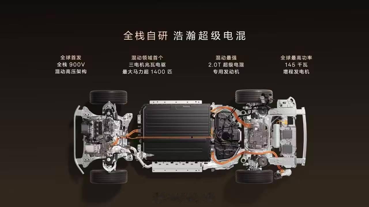 极氪9X 全栈自研浩瀚超级电混,全球首发,全栈900V高压架构,混动最强,2.0T超级电混专用发动机,混动领域首个,三电机兆瓦电驱,全球最高功率,145kW增程发动机
