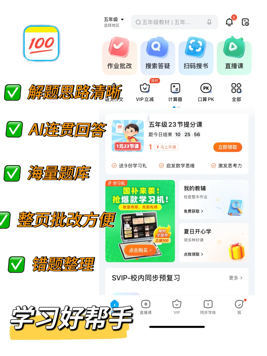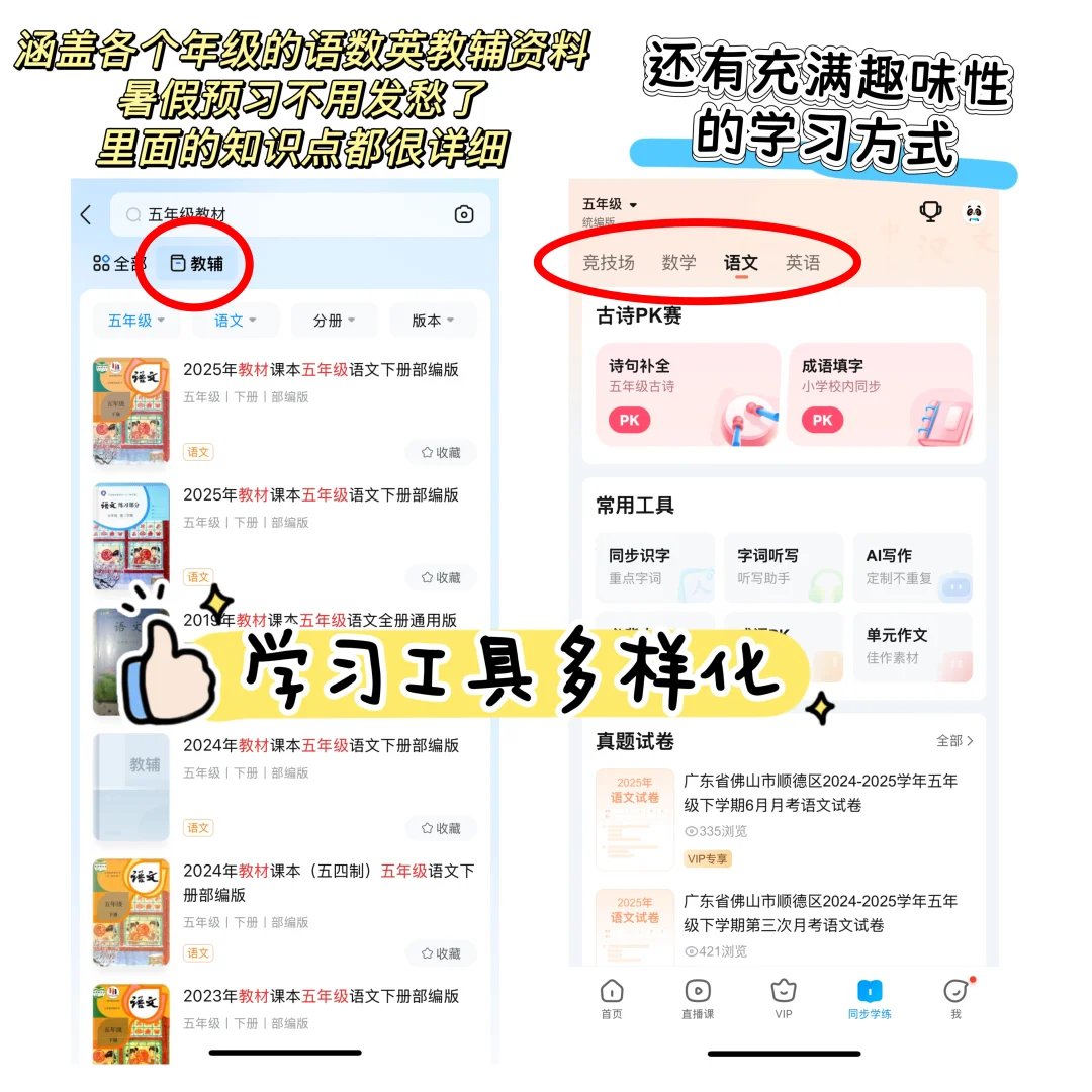 3.作业帮app里面还有教辅资料学习、错题整理、ai写作、趣味化学习等多种实用功能,不光是期末复习的好帮手,更是暑假预习的重要工具,赶紧利用起来哦!