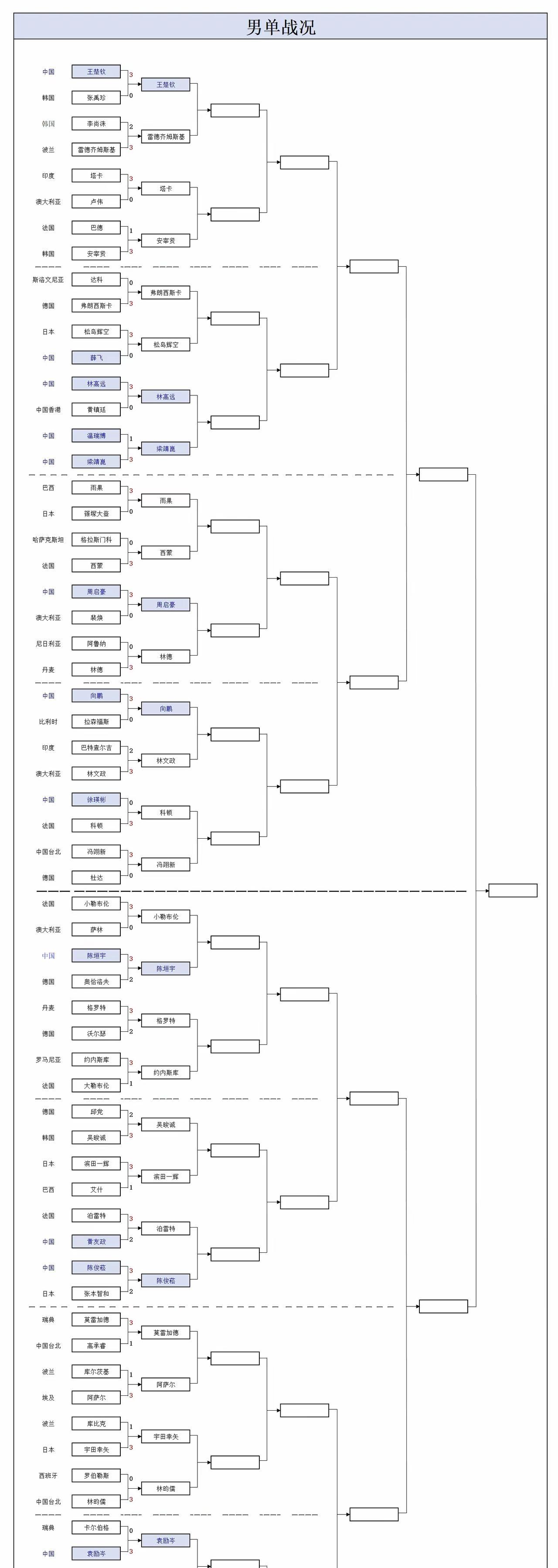 wtt中国大满贯赛, 男单比赛高潮迭起 首轮32强的淘汰赛 就让世界排名前十中的