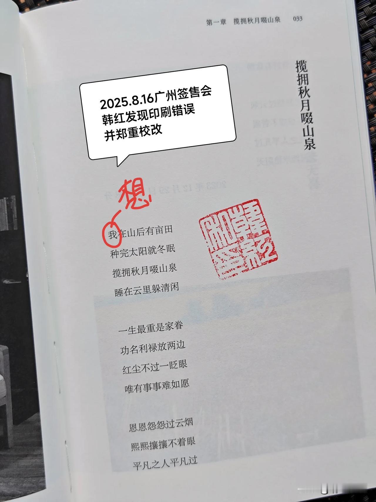 2025.8.16广州「韩红签售会」。 机缘巧合,去了现场,幸得一见。 从爱她的歌声,慕她的才华,敬她的人品,到现在赏她的文字。 《我与蒙面诗人》,图文并茂。韩红说: “我是一个热爱文字的人。” 韩红 晒图笔记大赛
