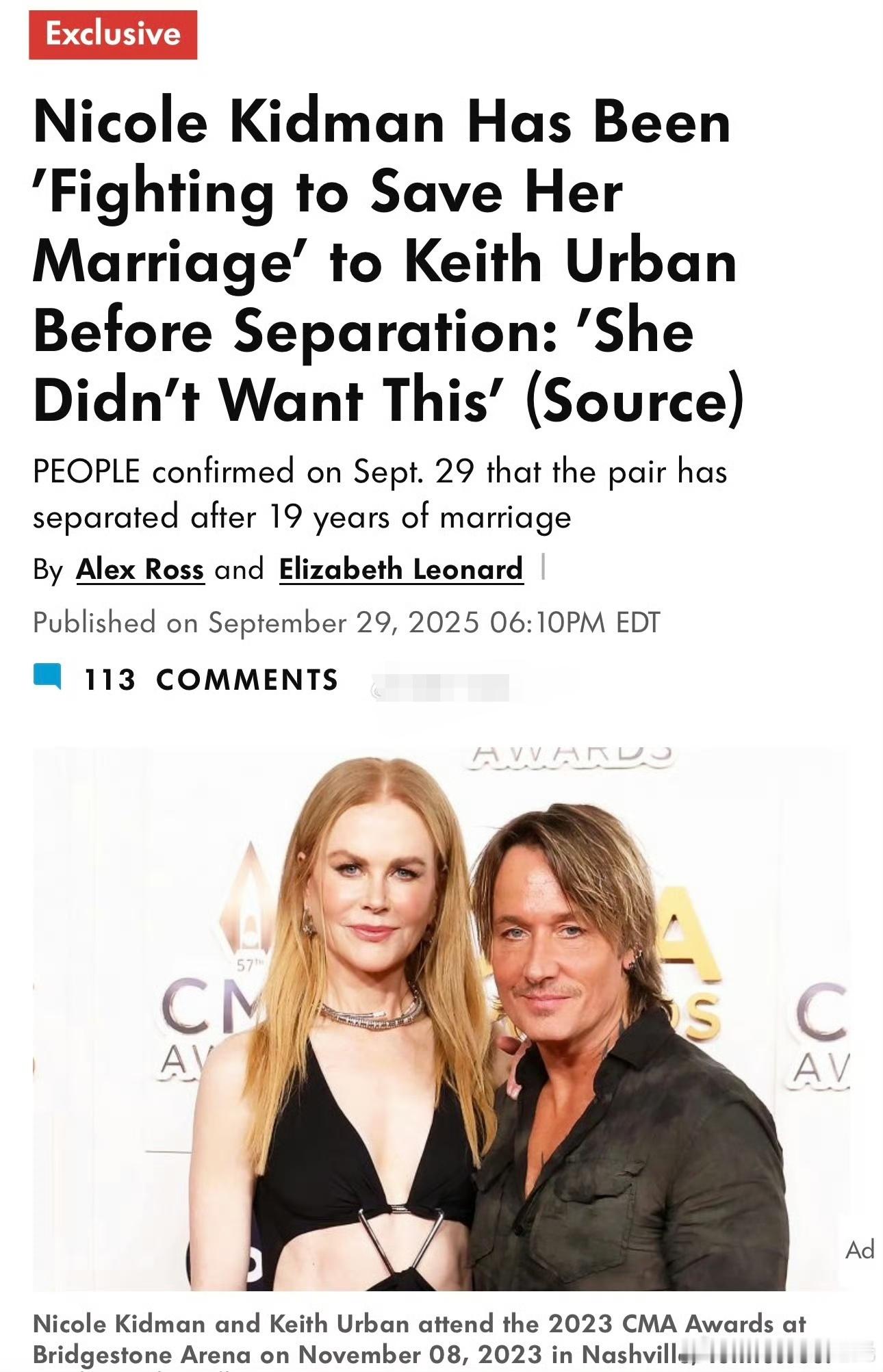 曝妮可基德曼分居外媒曝妮可基德曼分居
