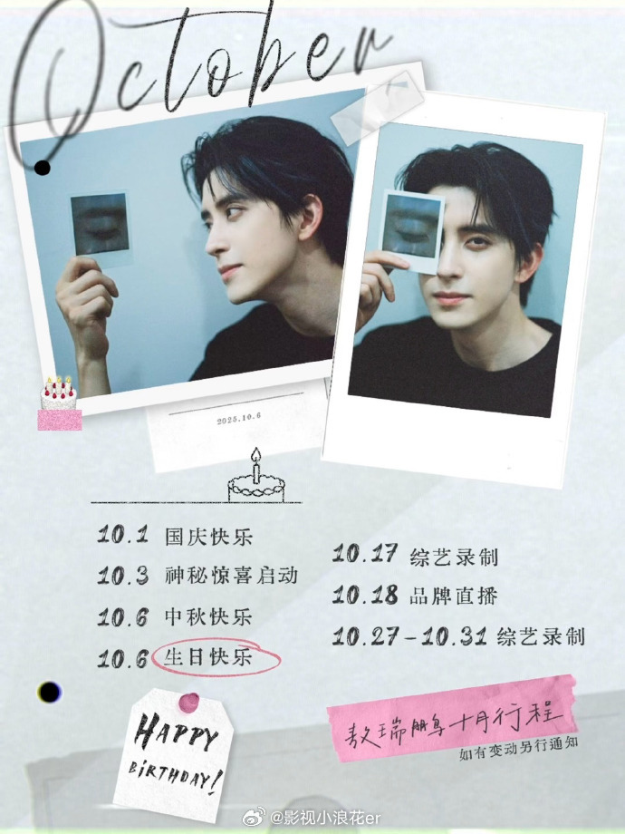 敖瑞鹏十月行程敖瑞鹏眼睛拍立得特写期待十月的随手拍!拍立得里眼睛亮晶晶,休息时