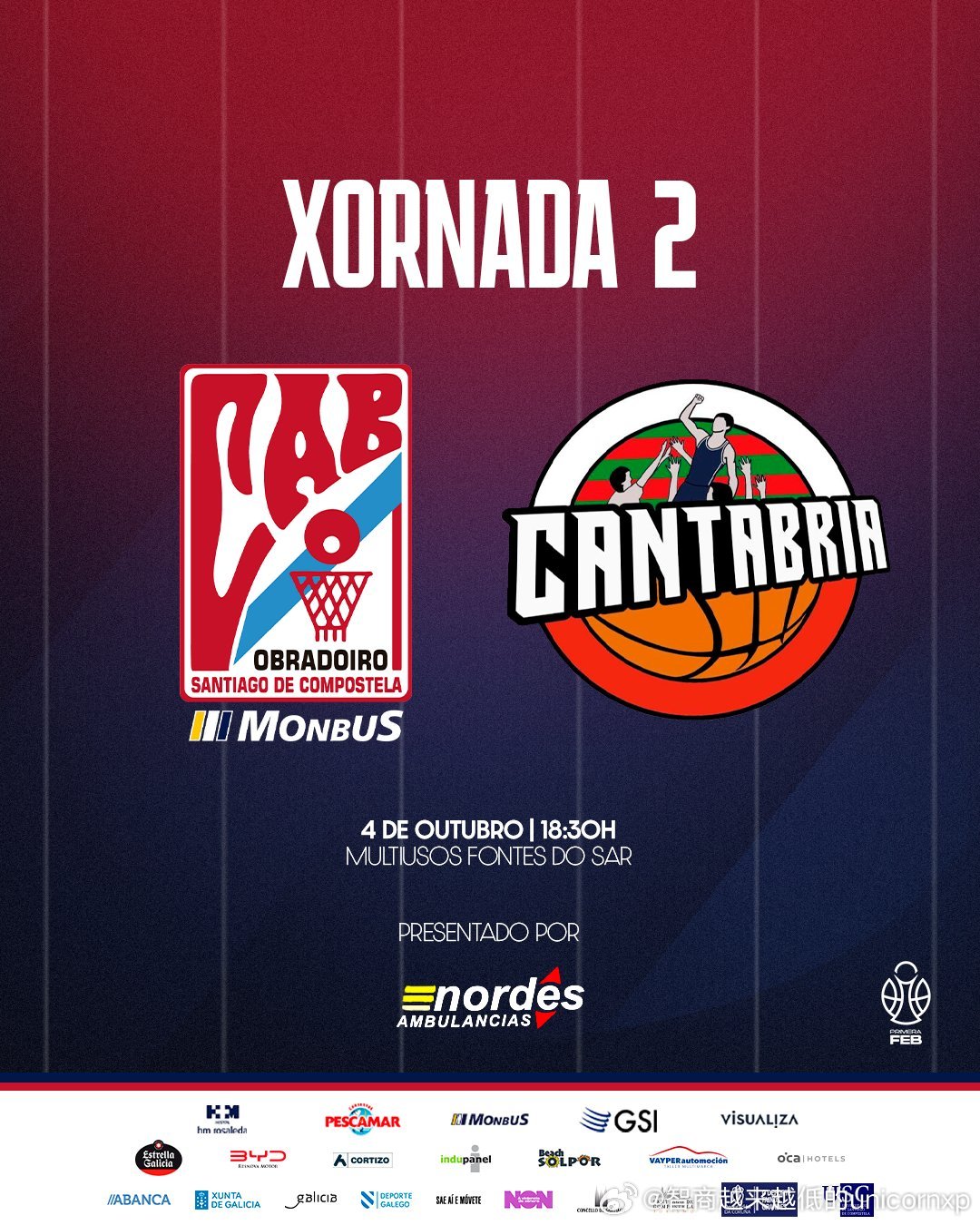 西乙联赛第二轮Alega Cantabria将在10月4日客场对阵Obradoiro余嘉豪中国男篮[超话]欧洲篮球 ​​​