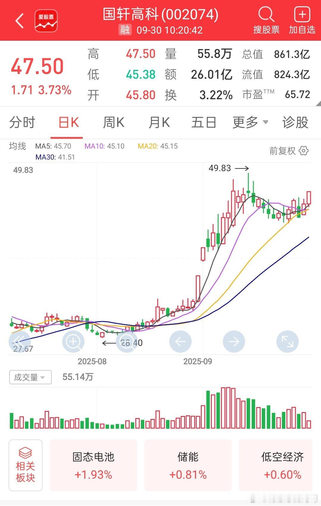 看图说话,国轩高科继续往上也是相当的舒服啊,继续高抛低吸即可,完美的表现了。