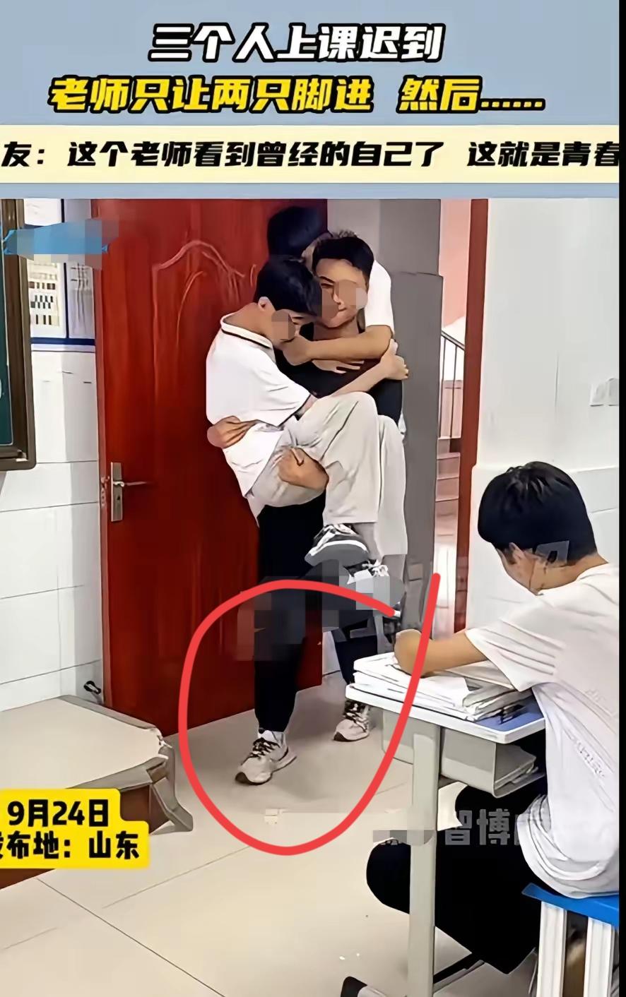 山东初三生“神操作”:3人挤成“一串”进门 山东初三课堂。3男生迟到。老师放话“只许一双脚进来”。 众人以为要集体罚站。两分钟后神反转:1人当“底座”,身前抱1个、背后背1个,3人叠成“糖葫芦”进了门。 网友笑称“这机灵劲用学习上,妥妥学霸”。其实他们不缺智商,缺的是引导。就像刘媛媛从倒数逆袭北大,课堂外的世界从不用分数定输赢。 这事儿像面小镜子:教育不该削足适履,毕竟人生考题可不止“学习”这一道。