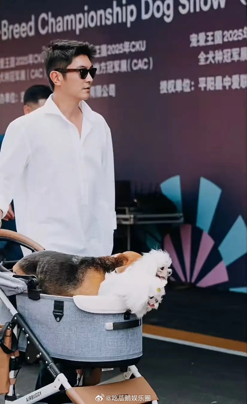 杜江夫妇带珍珠阿那亚参加犬展,霍思燕戴大金表,鼻头变大富态了!​​​