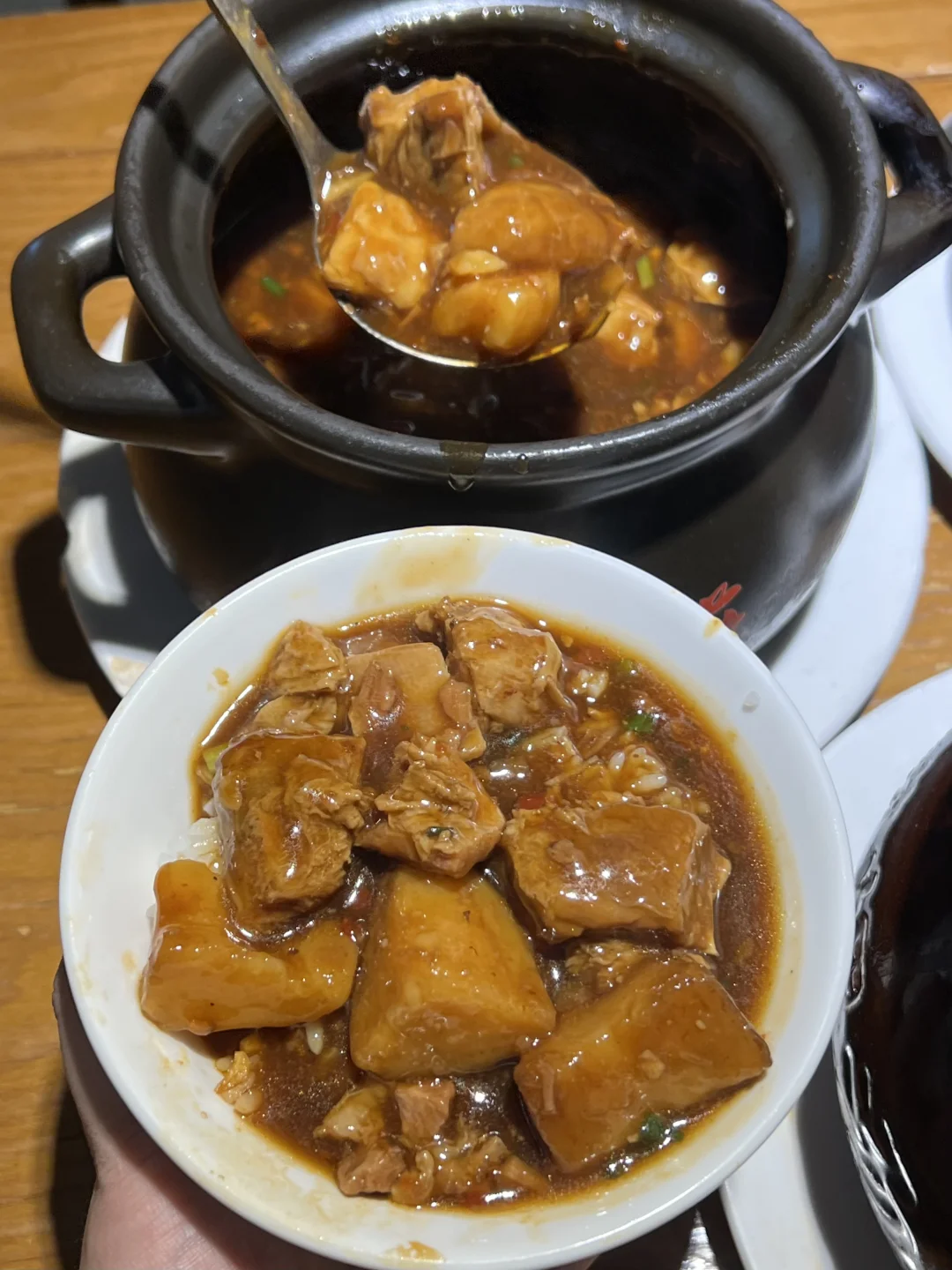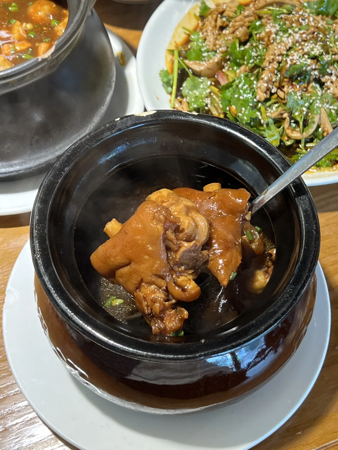 真的是我在长沙舍不得公开的一家小店 吃他们家的罐子菜真的只有一次和无数次 所有的菜品放在瓦罐里现煮!!每一个都吼吼吃!! 个人很喜欢土焖罐牛腩、罐子猪脚再搭配一两个小炒!!四个人吃刚刚好!!焖罐牛腩拌饭吃嘎嘎香 喜欢喝汤的姐妹一定要试试他们家的肉汤汤!巨鲜!!信我!!国庆来长沙第一站选这里没有错 定位到西长街的友味小馆就可以啦!!