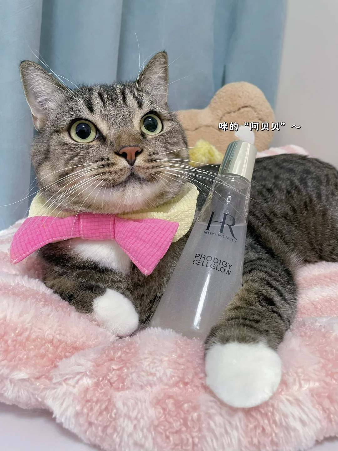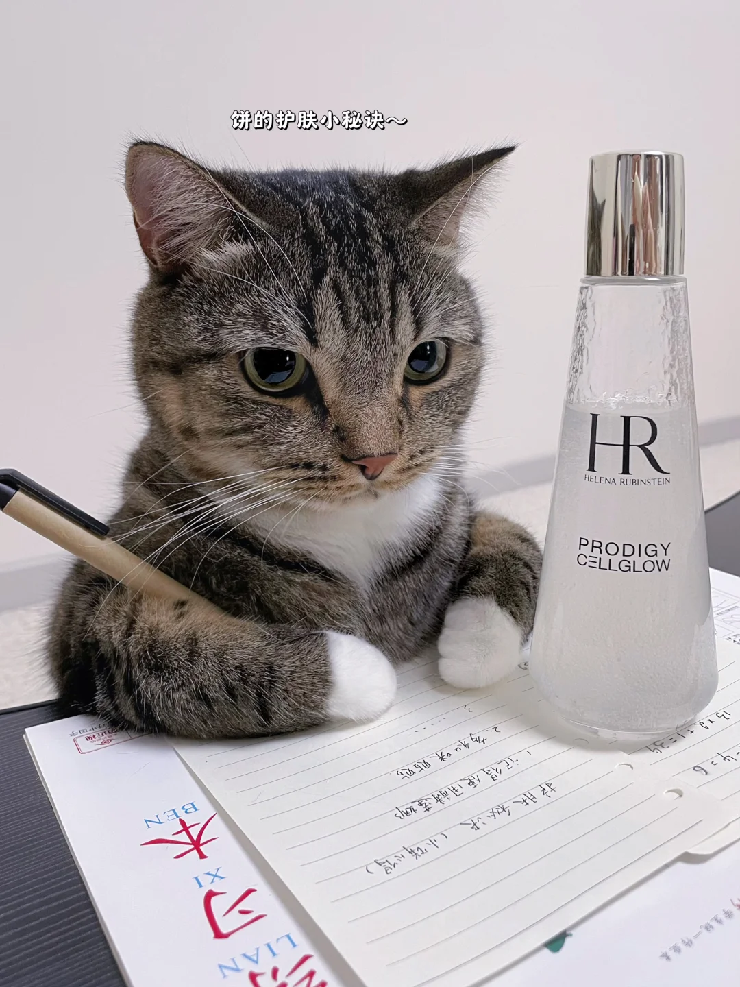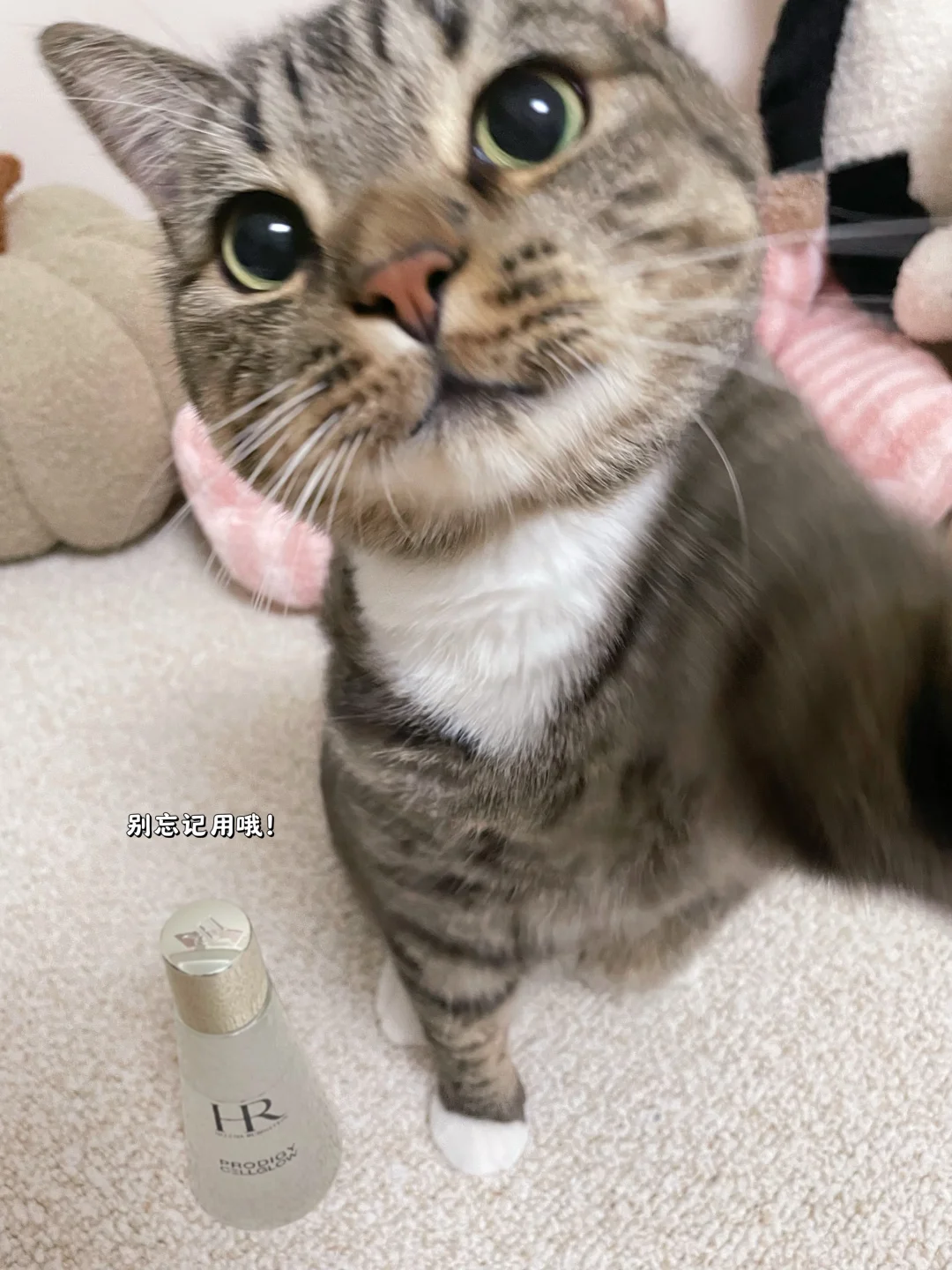 总有人问我养猫到底有啥好的 我:请看图! 有一只毛绒绒的小登西陪着,这种幸福跟不养猫的根本讲不清楚! 有时觉得猫儿真像个小孩,比如饼饼,每到晚上就很黏人,要人陪它玩儿、哄它睡💤 看我吃啥它也馋啥,看我用啥它也想用! 我每天用的赫莲娜小露珠饱满水都被它当成阿贝贝了,难道小猫也喜欢这种blingbling的东西吗? 这个一瓶就能搞定我皮肤补水、补油、补精华的需求,堪称一露三补! 我一边擦,它也凑过来跟着嗅,[自拍R]是不是觉得这个跟麻麻身上味道很像呀嘿嘿~ 别说这晶莹剔透的漂亮小瓶跟饼饼还挺搭,要是饼真可以当个小记事官提醒每天护肤就好啦😎