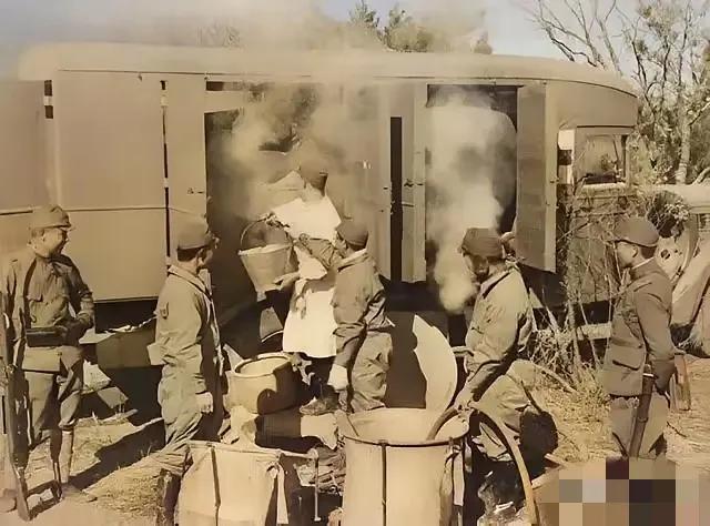今日看到这张照片,才惊觉侵华日军竟配备有蒸饭车。给我的印象和影视剧中当时部队行军