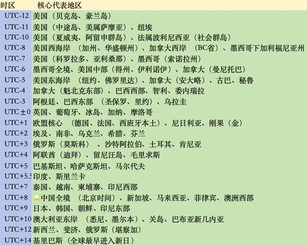 世界时区分布全图