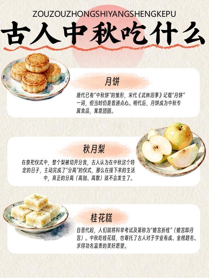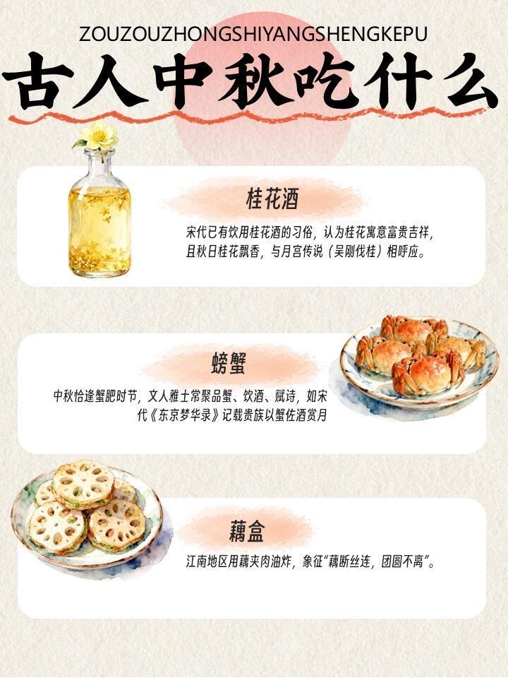 中秋的100种喜悦中秋赏月吃月饼的传统自古就有,但老祖宗的餐桌比我们想象的更丰盛,我以为古人只有月饼吃,没想到中秋必吃清单这么多,每口都是团圆的仪式感