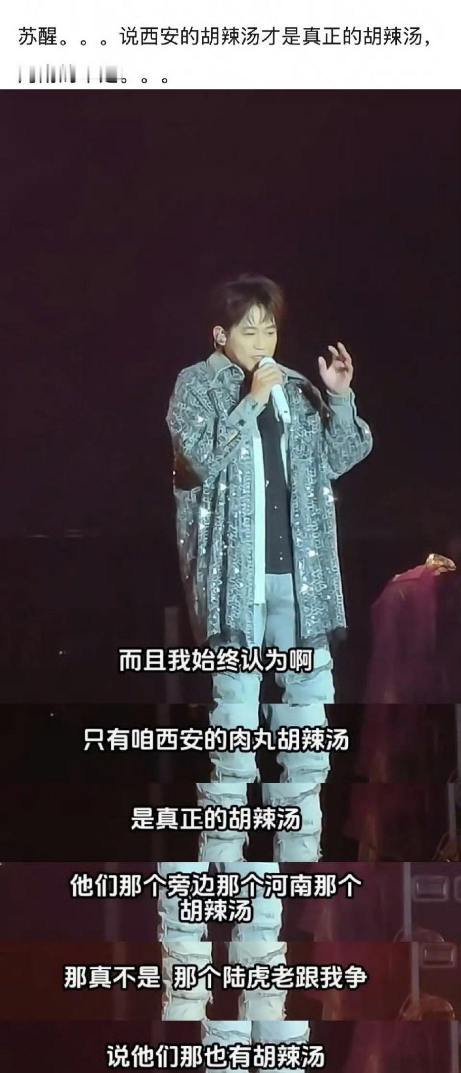 苏醒之前对胡辣汤的言论是“西安的肉丸胡辣汤才是真正的胡辣汤。河南的胡辣汤,不是”。