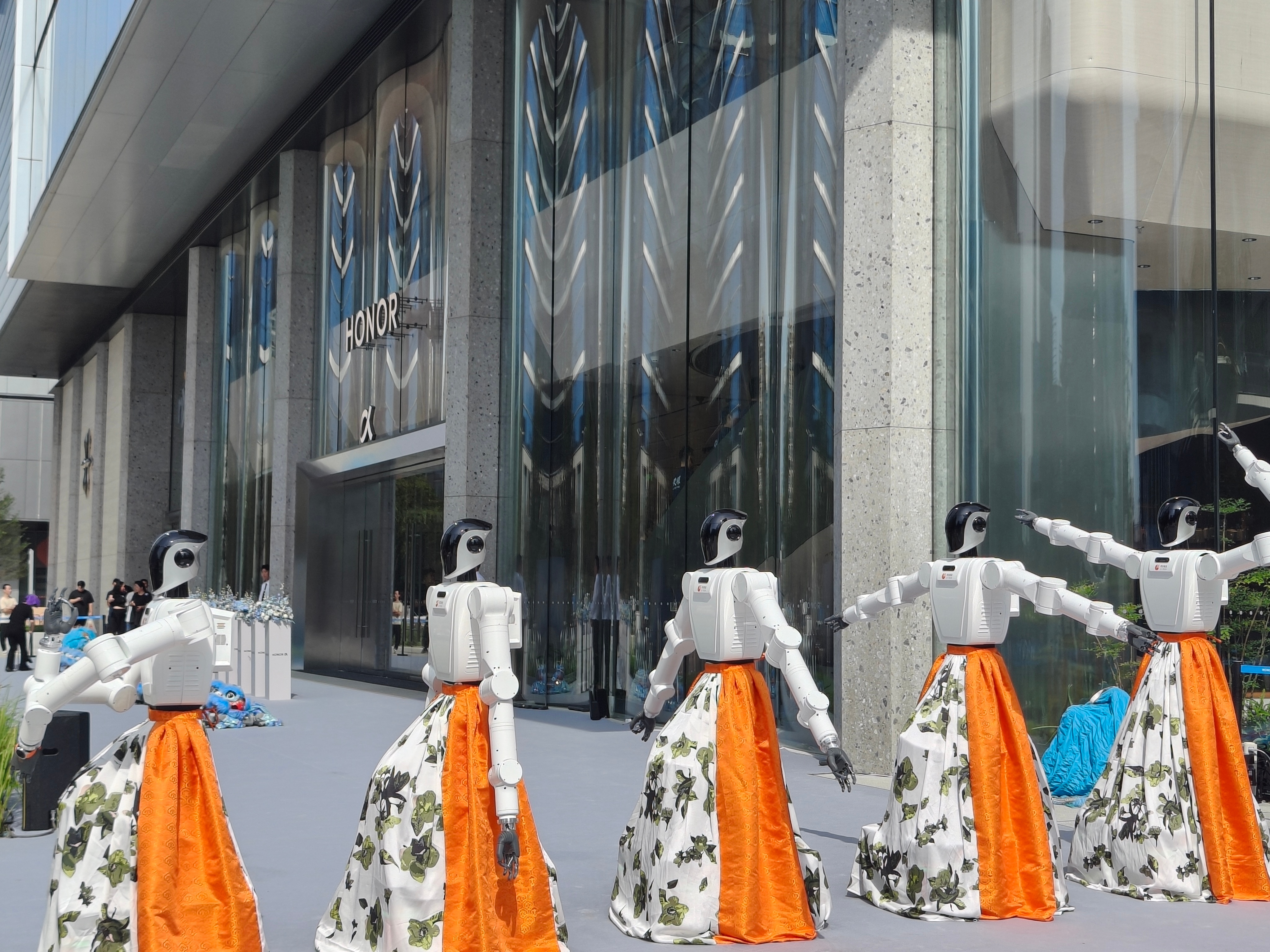 荣耀全球首家阿尔法旗舰店跟新的深圳万象城二期同步开业,现场的机器人表演跟这家店太适配了,毕竟这阿尔法旗舰店可不是简单的手机店了,卖的东西叫“AI终端”。[666]
