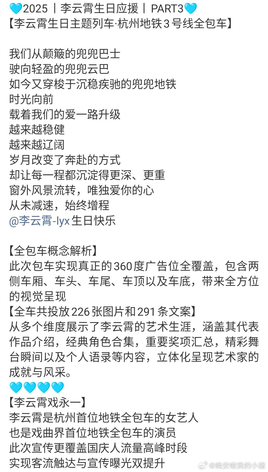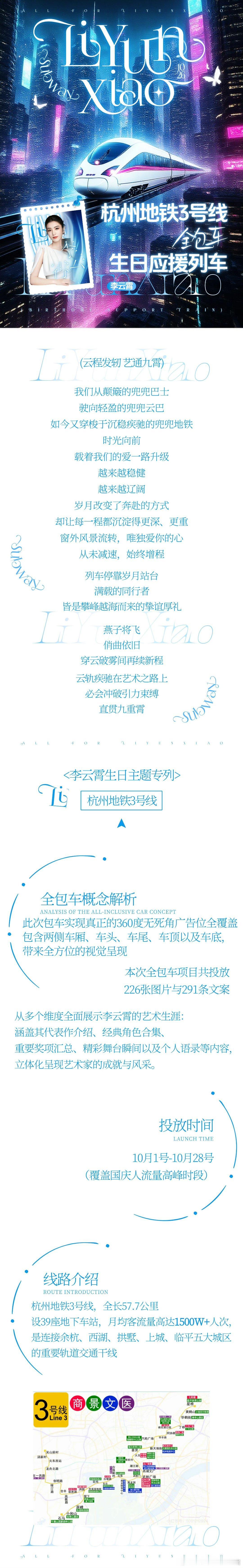 李云霄生日粉丝应援,谁懂是杭州首位地铁全包车的女艺人,也是戏曲界首位地铁全包车的