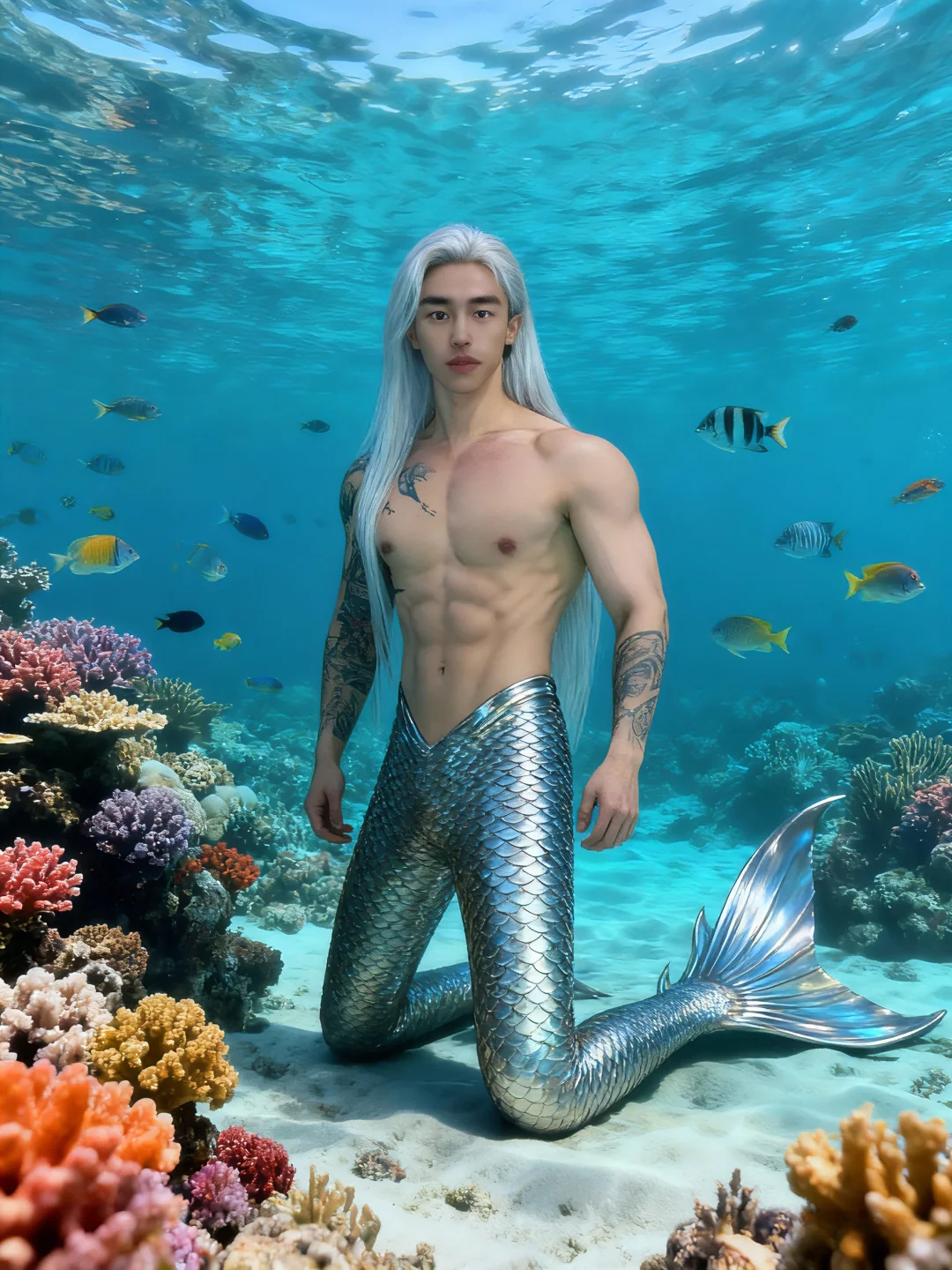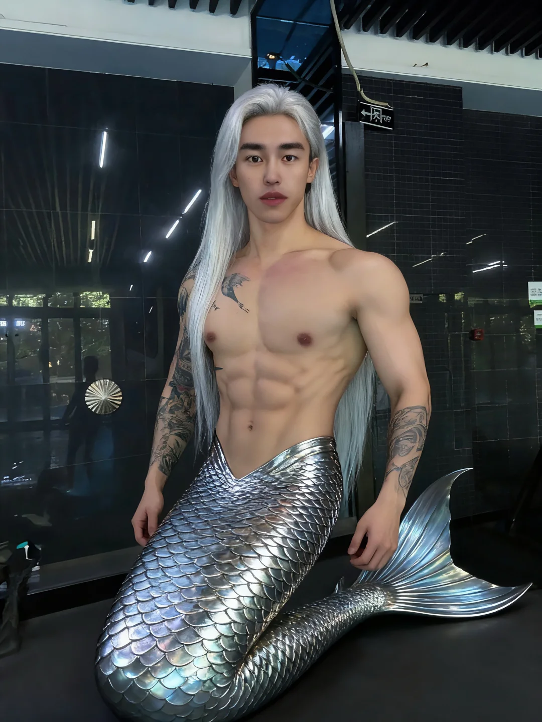 我只是想叫豆包给我生成一张银色长发+金属质感美男鱼尾巴的图