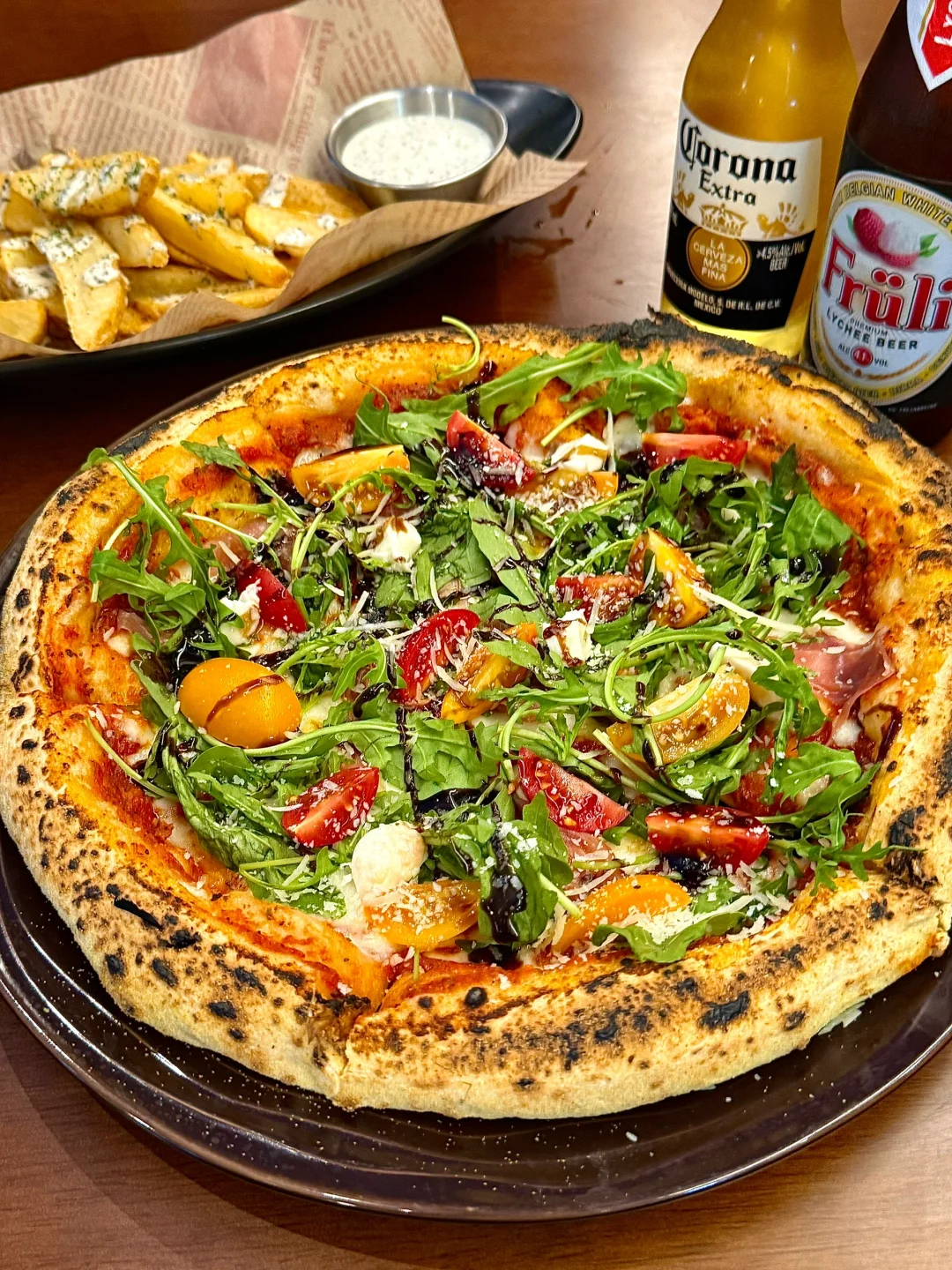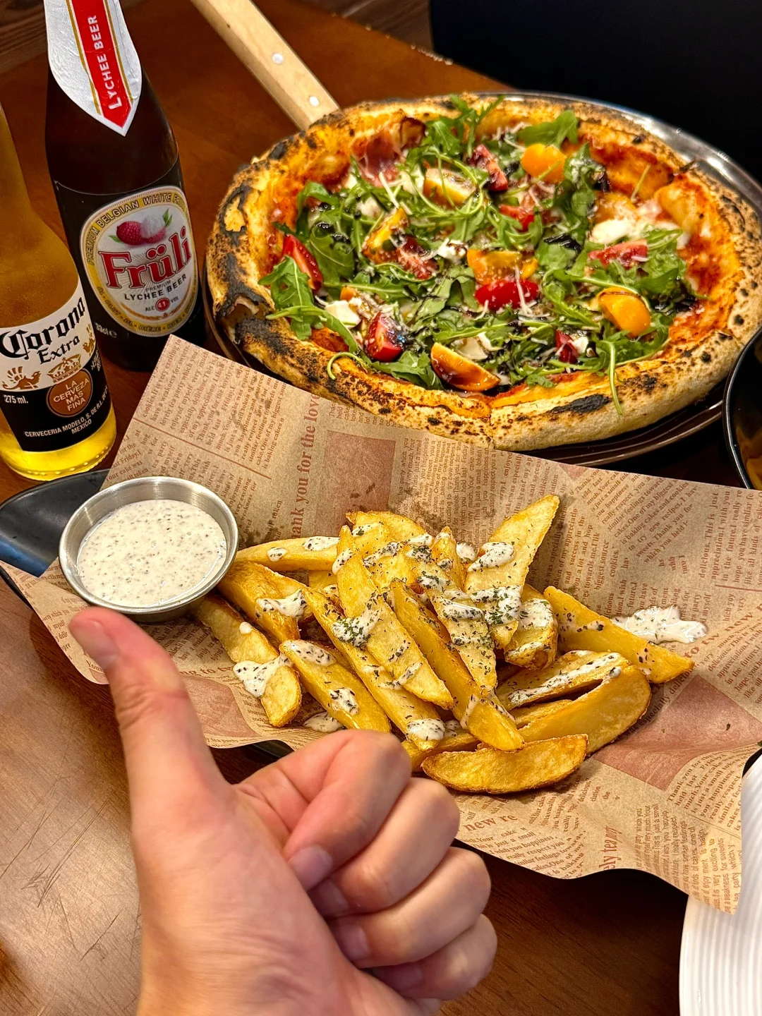他们家的披萨都是用窑炉现烤的,选用上好的苹果木当木材,烤出来的披萨特别香,比普通披萨好吃太多!