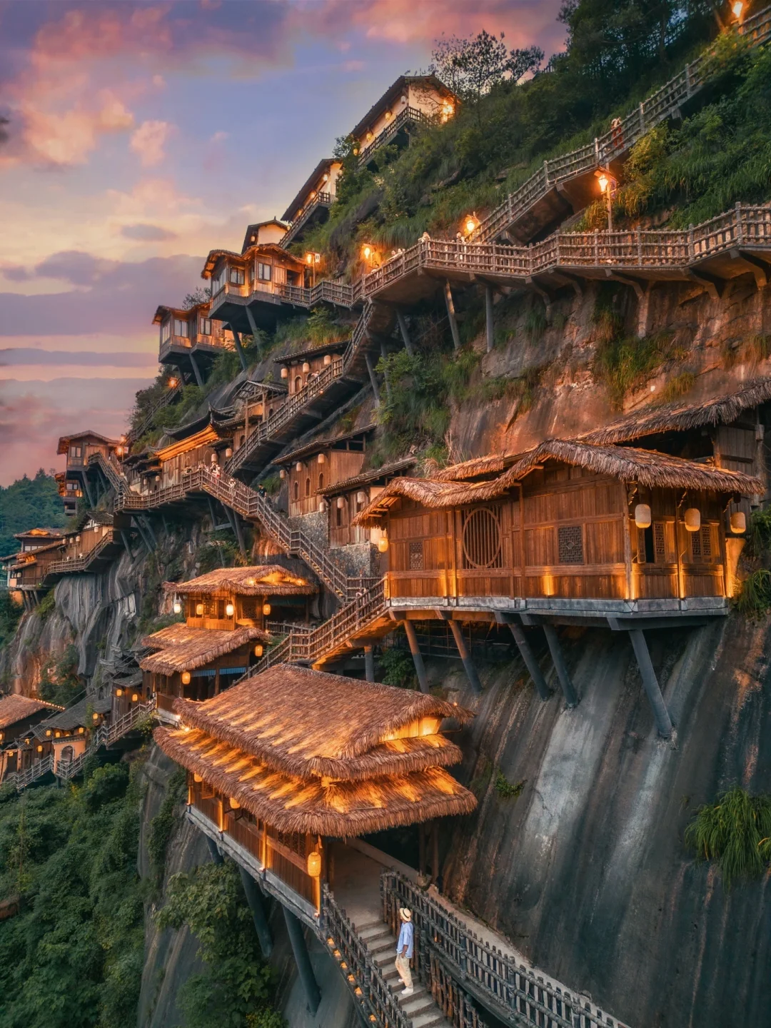 悬崖边上的房屋简直就是现实版的仙侠世界
