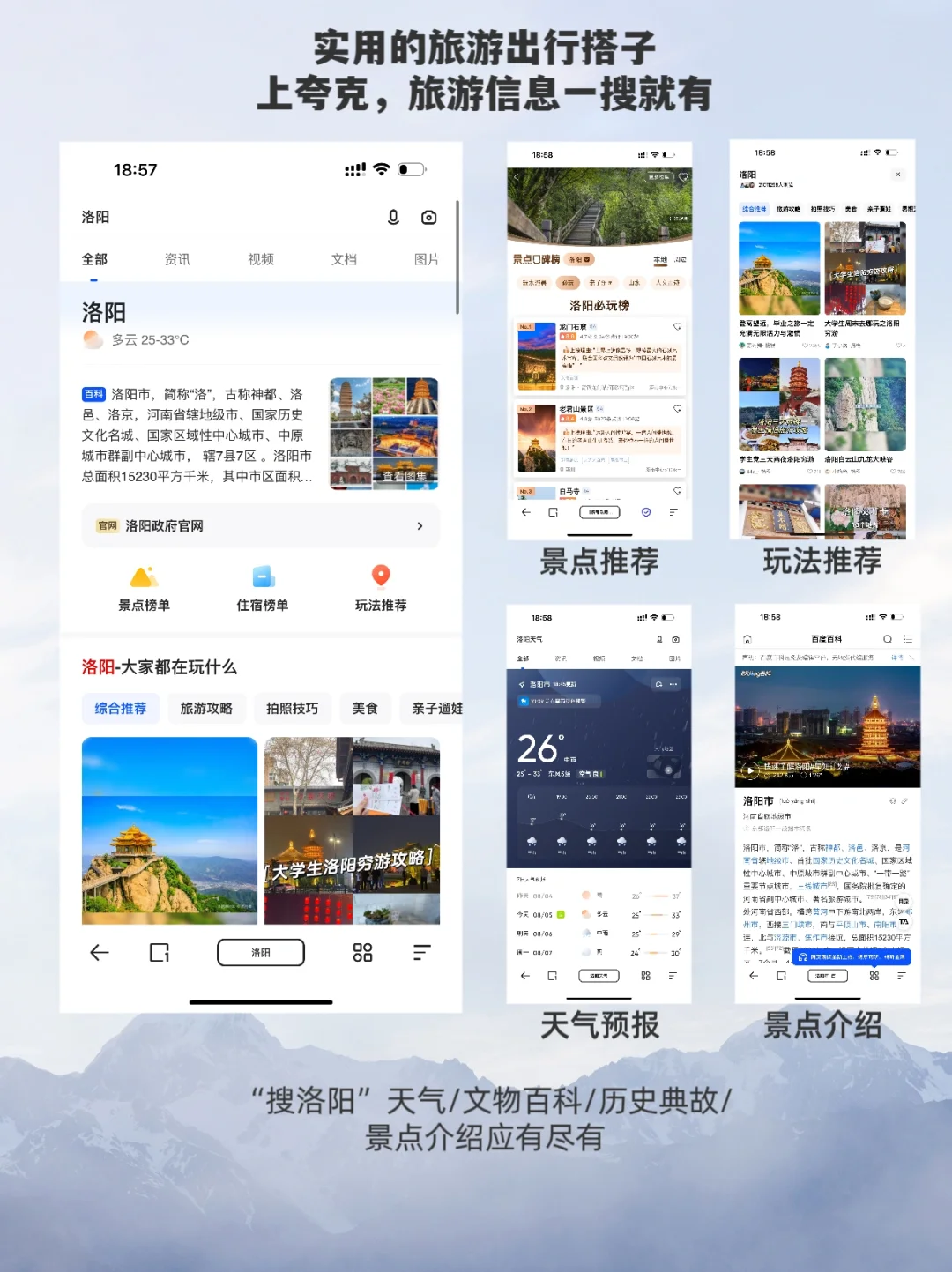 🔹一直在用的夸克APP 简直省去了我大把的搜索时间 无论是景点介绍、名人典故还是旅游攻略 只要搜索目的地 例如:洛阳 就可显示出所有的相关信息