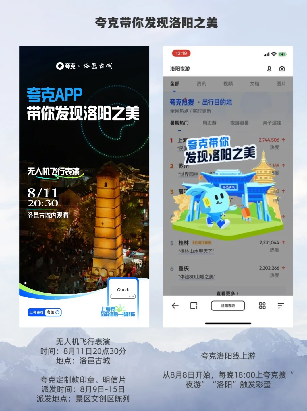 这些旅游信息都是在夸克APP搜到的,现在搜“洛阳夜游” 还能解锁惊喜彩蛋,还有特色夜游榜单推荐。除此之外夸克联合「洛邑古城」推出限定明信片打卡活动,集章爱好者们更是不容错过!