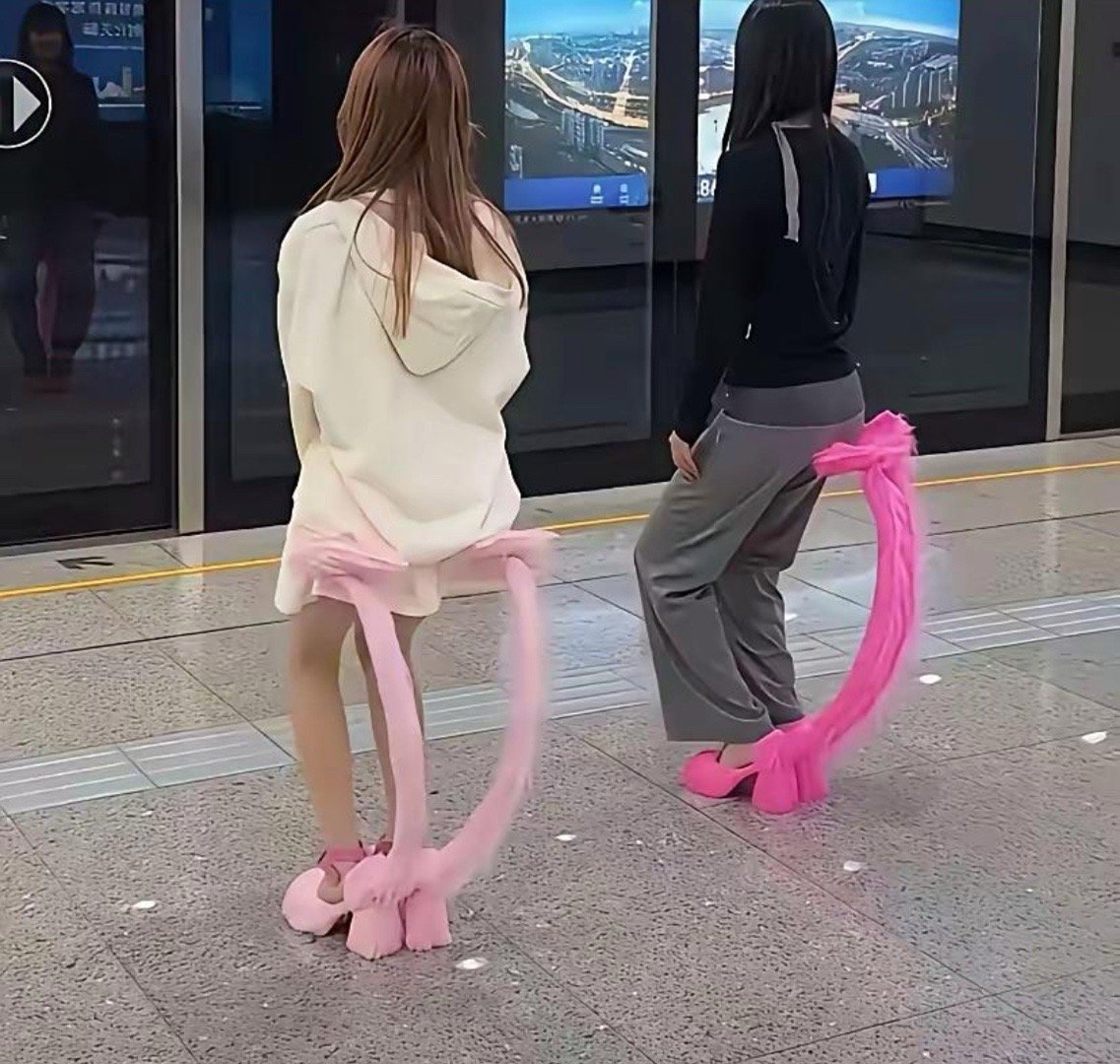 坐地铁看到这鞋子真是惊呆了,走累了就坐下来休息一会儿也太人性化了​​​