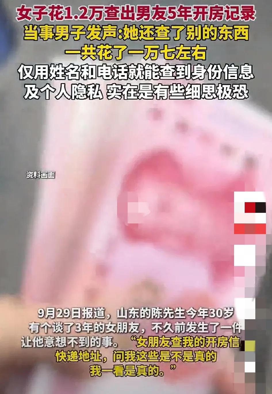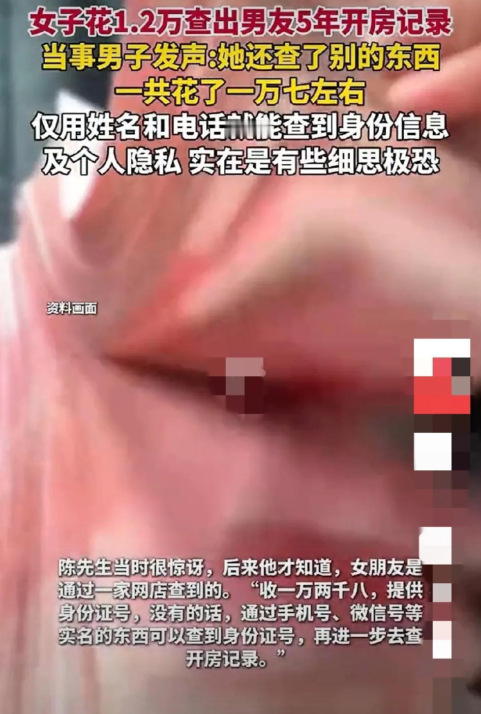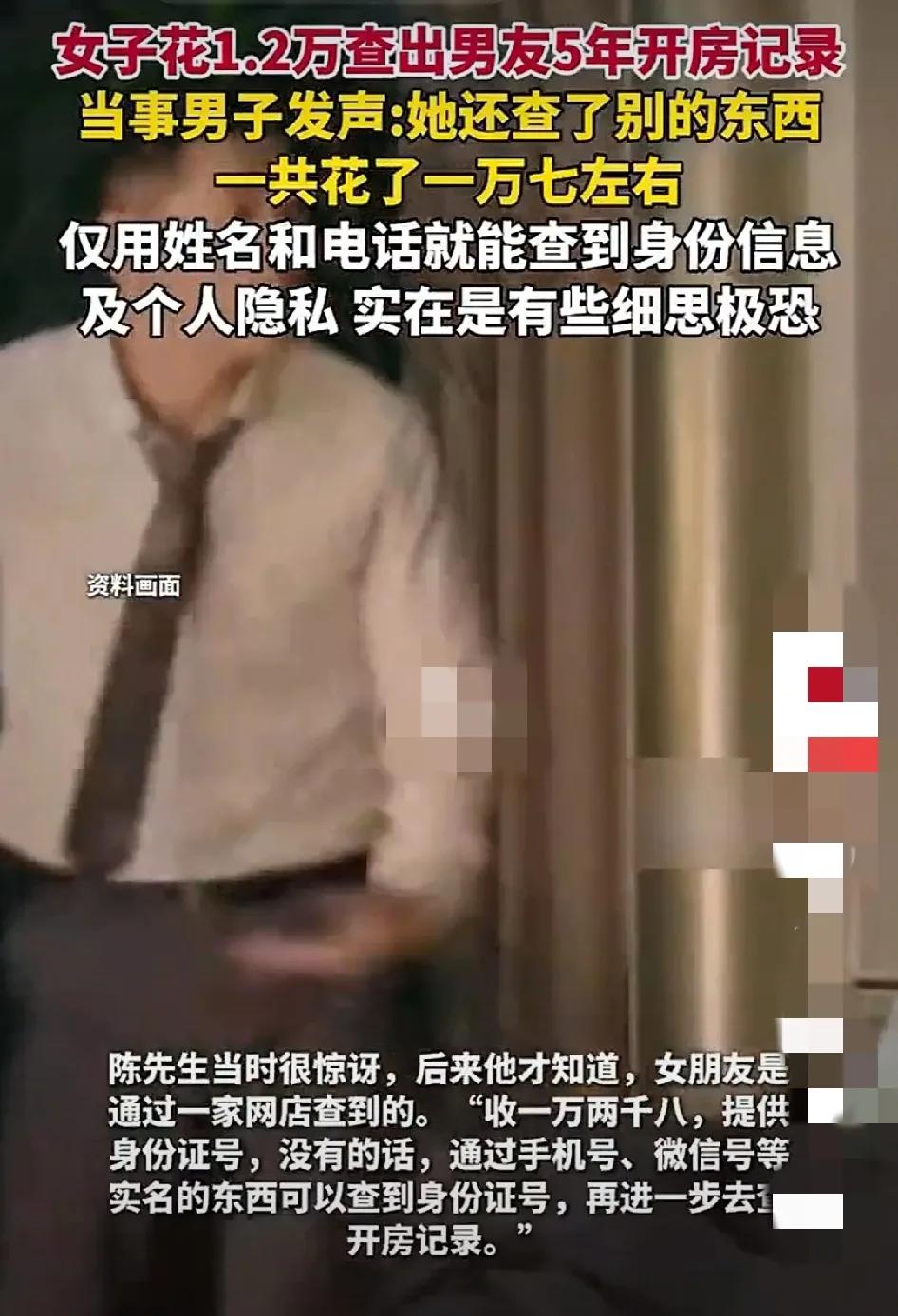 奇葩女子,奇葩的心理,奇葩的爱好,奇葩买卖,奇葩的爱恋,奇葩的网购!身份信息没有一点隐私可言!无语,这个奇葩的社会!都有点公德心好吗! 据报道,有女子通过某些非法渠道网购到了男友的开房记录,引发了信任危机。这反映出个人信息泄露问题依然严重。 再有,买卖他人住宿记录涉嫌侵犯公民个人信息罪。酒店泄露客户信息违反《个人信息保护法》,网购平台允许此类交易也需承担连带责任。反映了一些人对伴侣的不信任心态,也说明个人信息黑产依然太猖獗。 另外,既要重视个人信息保护,也要反思亲密关系中的信任问题。用违法手段获取他人隐私,不仅破坏感情,还可能面临法律后果。
