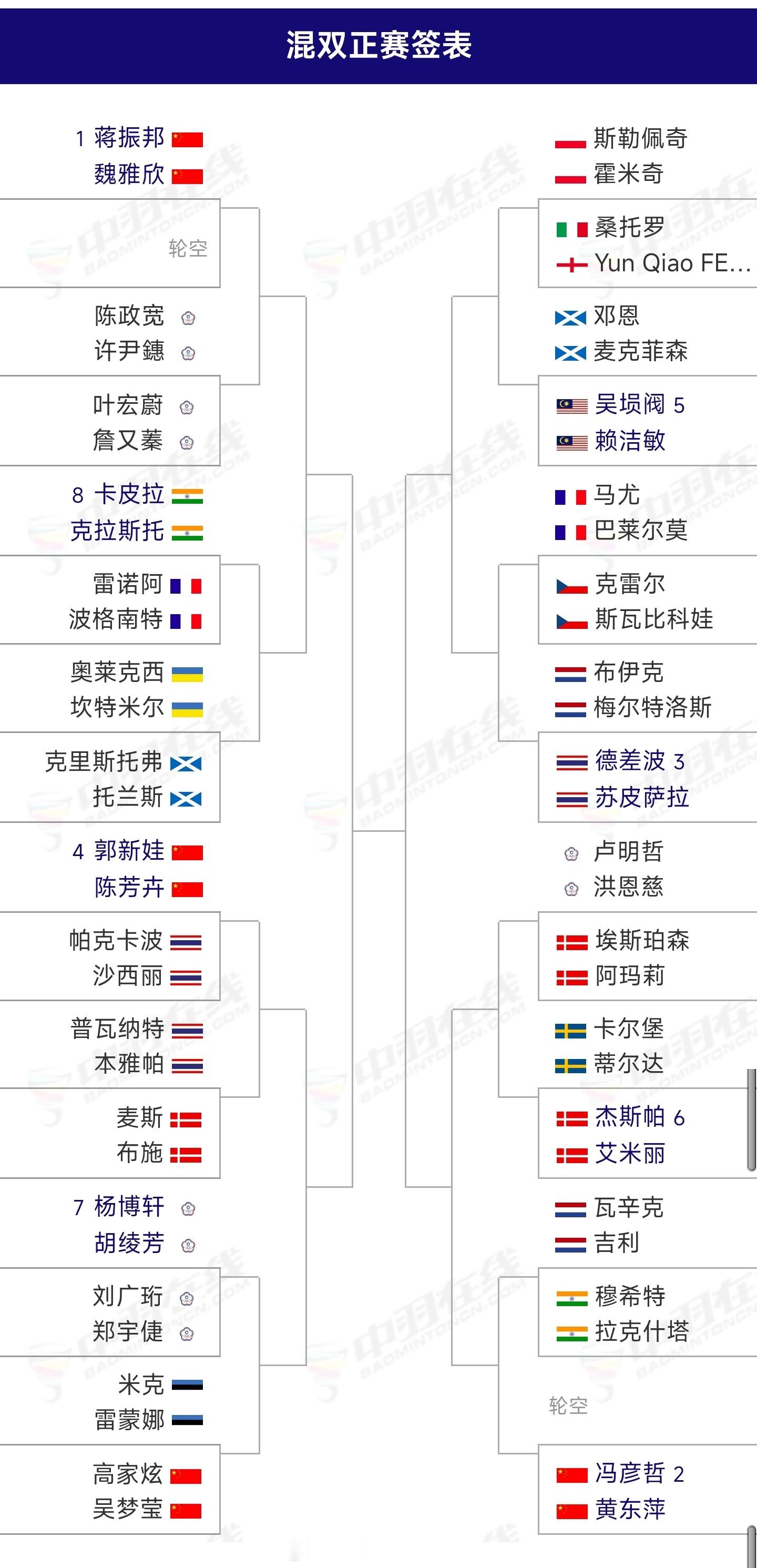 蒋振邦/魏雅欣🇨🇳 首轮轮空