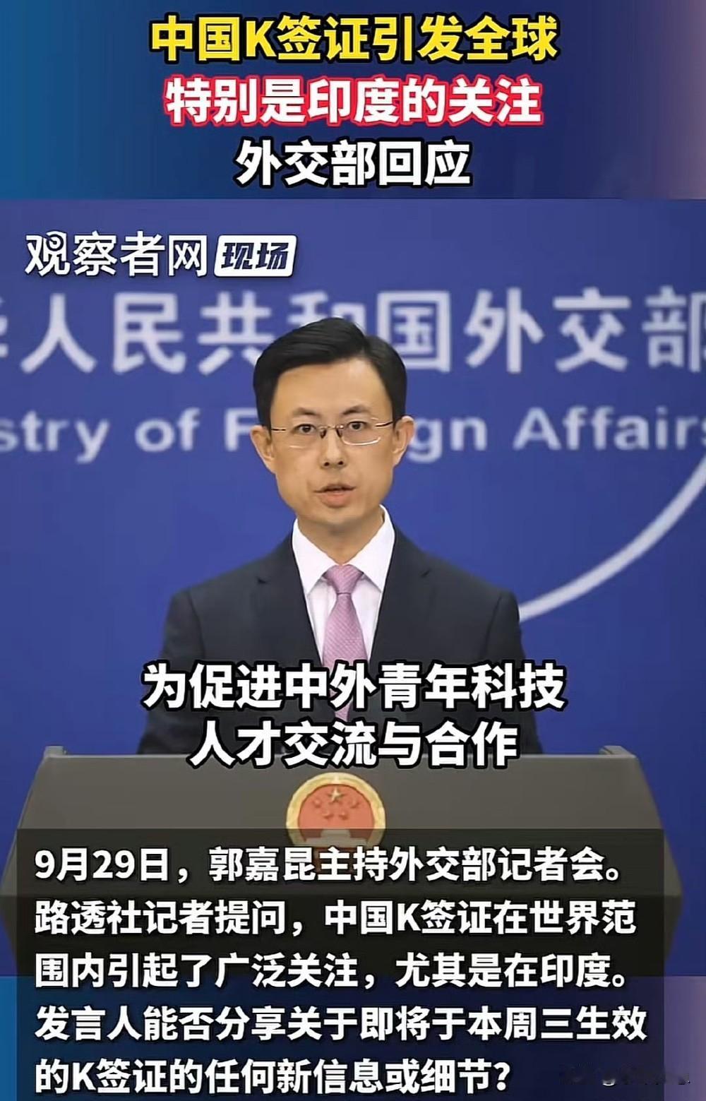 路透社记者问:“发言人能否分享关于即将于本周三生效的K签证的任何新信息或细节?” 外交部发言人答:“关于申办K字签证的具体事宜,请关注中国驻外使领馆即将发布的相关信息。”