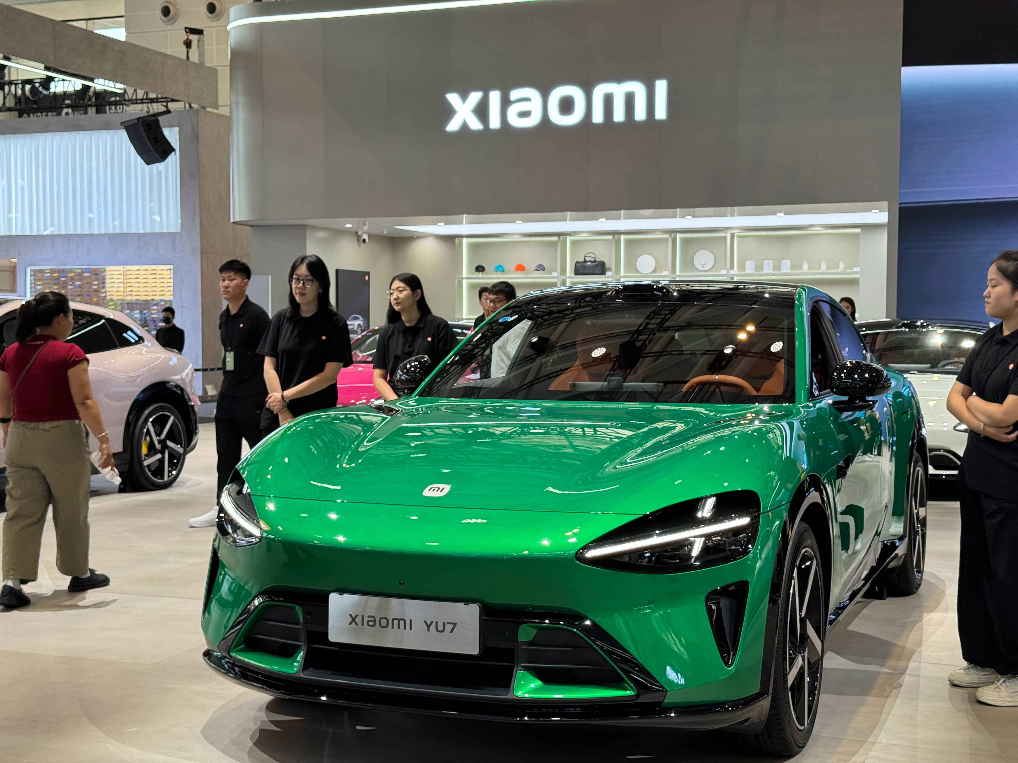 展台C位的小米SU7 Ultra直接把排面焊在身上!一身闪电黄在灯光下亮得晃眼,自带吸睛buff,路过的人哪怕不买车,也忍不住举着手机狂拍。旁边的SU7也丝毫不输,照样是妥妥的人气王,围着看车、打卡、问参数的观众就没断过;首次登场的YU7更成了“香饽饽”,里三层外三层的人挤着看内饰、聊续航,工作人员忙得连喝口水的空都没有——小米汽车这顶流热度,是真的没谁了!