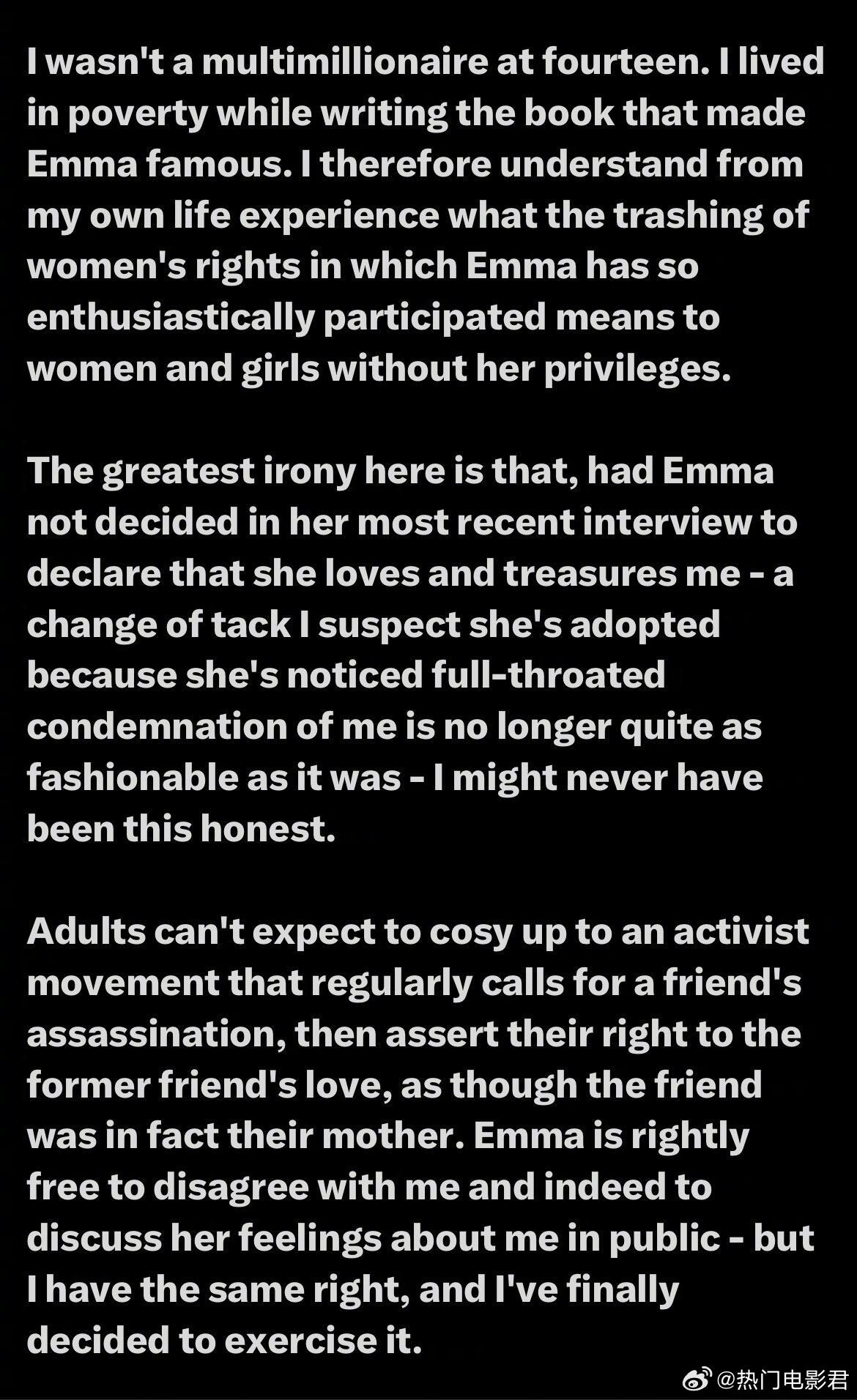 罗琳怀疑艾玛最近对自己示好只是因为“公开谴责罗琳”不再流行👏🏻