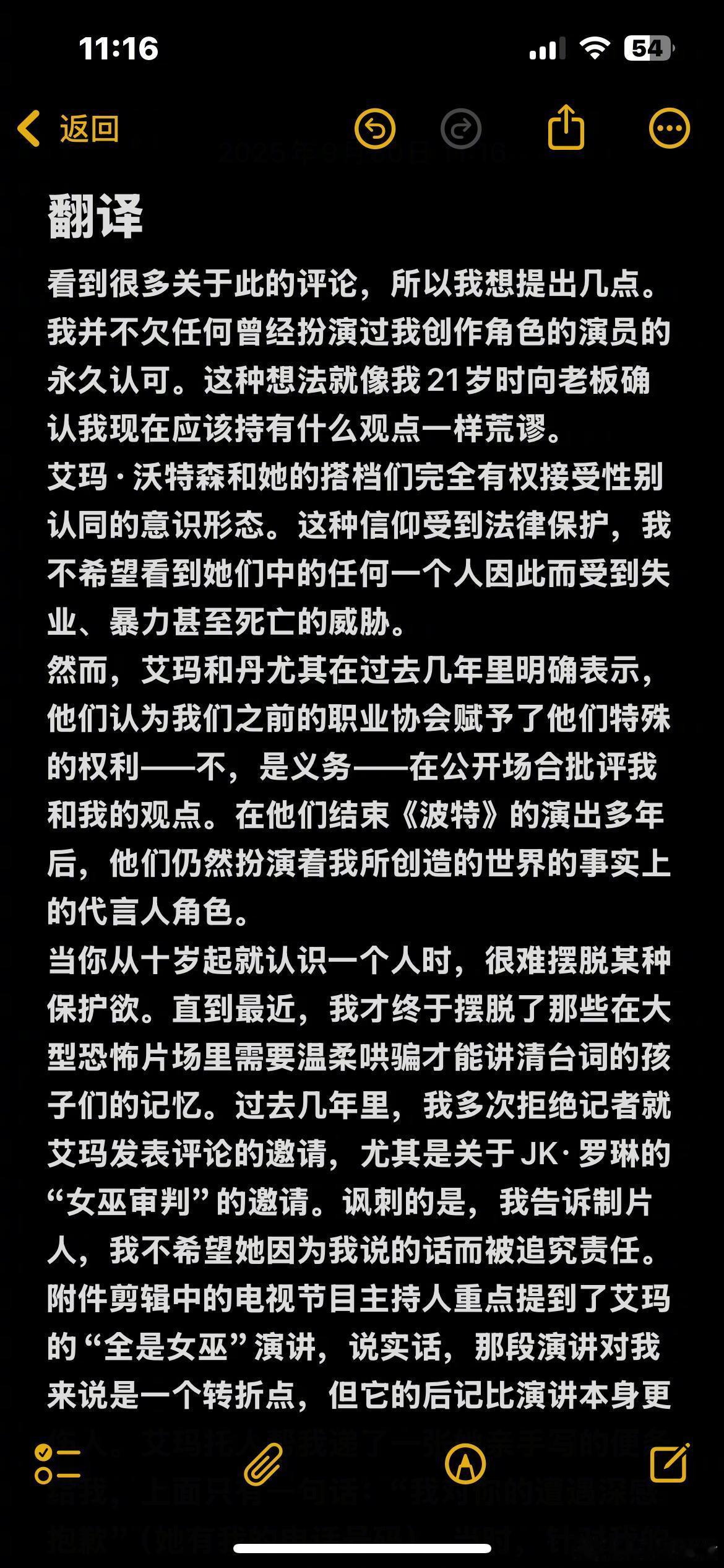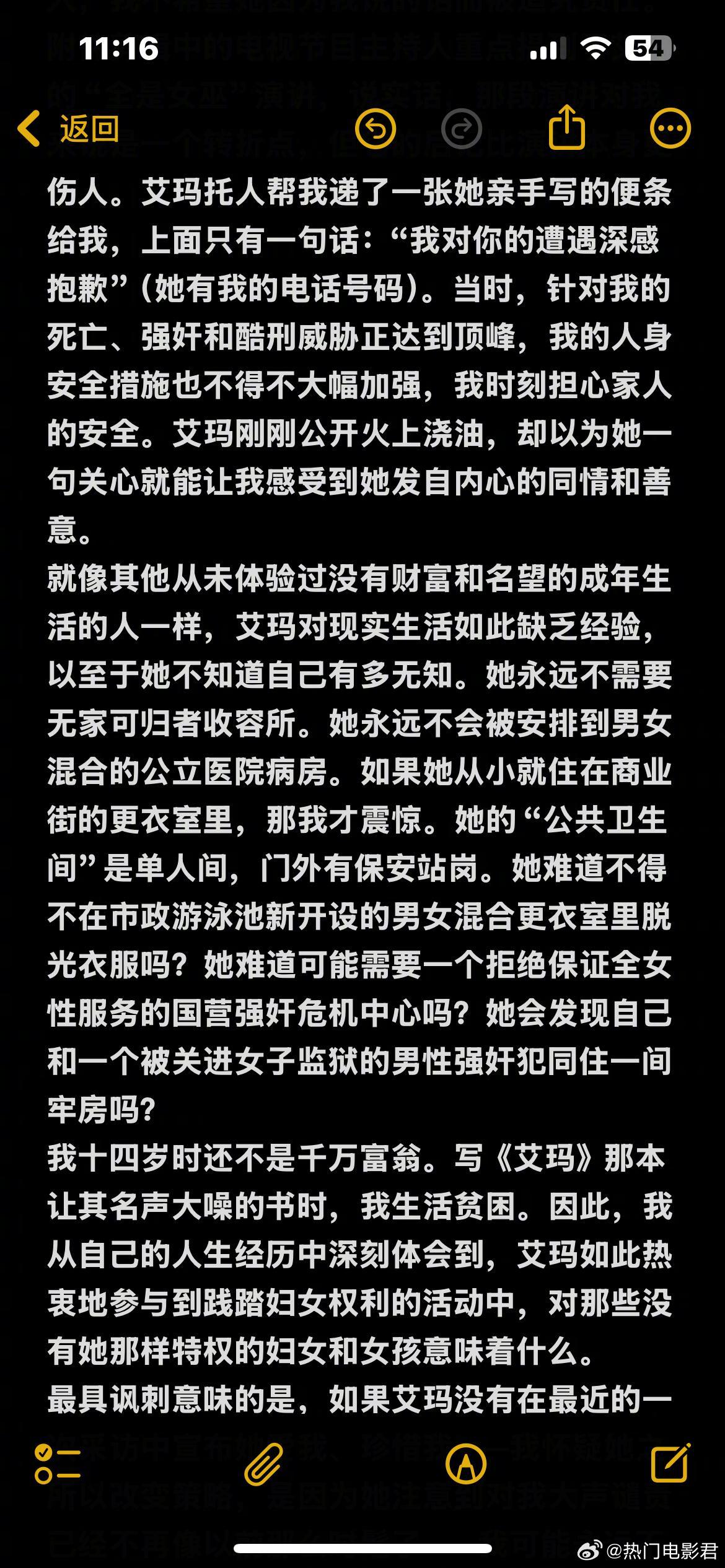 这句话被广泛解读为她在公开支持跨性别群体、反对JK·罗琳的性别观点。因为罗琳当时因性别议题言论引发巨大争议,很多人认为艾玛此举是“暗讽”或“影射”罗琳。