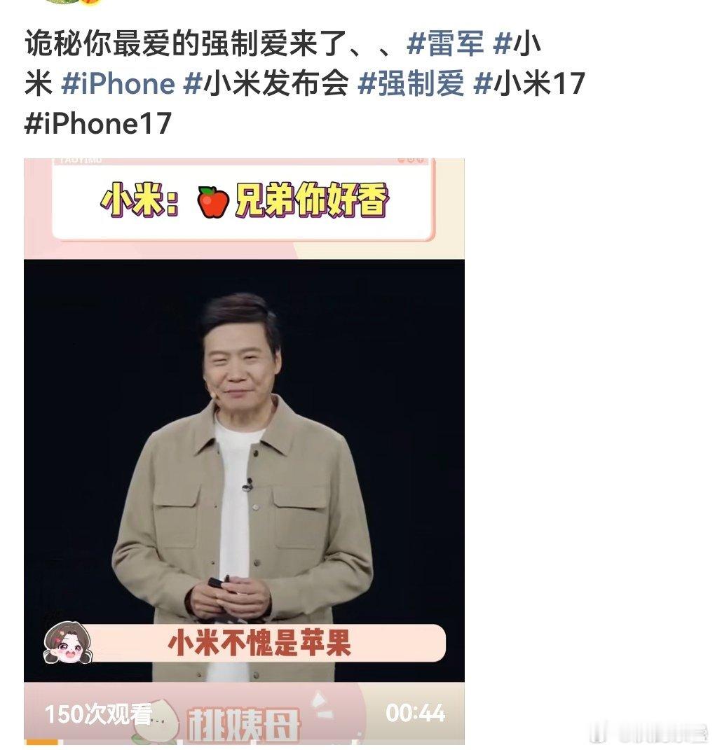 小米演讲句句不离苹果这事儿前几天还营销“强制爱”呢,我以为正加成呢……