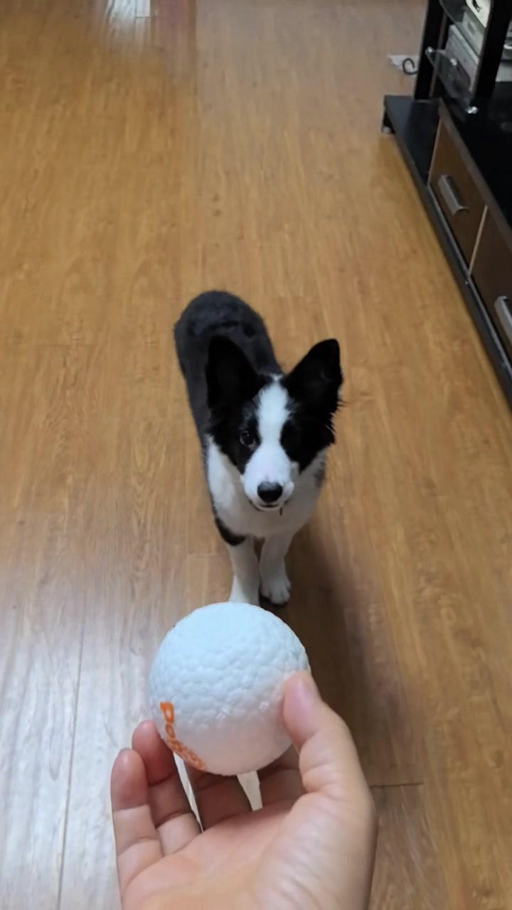 边牧玩弹力球太会了!🐾小边牧刚拿到弹力球,没一会儿就玩得超熟练~ 它叼着球跑来
