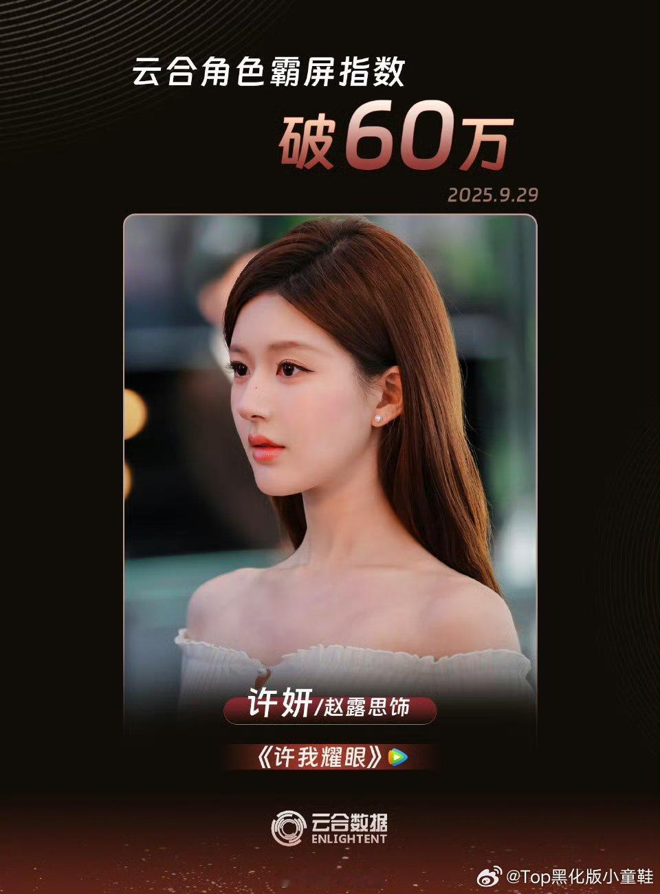 好家伙,赵露思《许我耀眼》云合占比27.3,播放量预计5500w+,直接拿下断层第一!