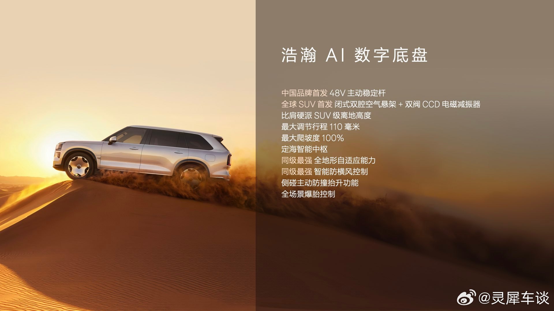 新车基于全球首个豪华电混专属架构——浩瀚-S打造,并首发搭载浩瀚超级电混、浩瀚AI数字底盘、浩瀚安全盔甲与千里浩瀚辅助驾驶四大核心科技,旨在三电、底盘、安全与智能化领域实现代际领先。