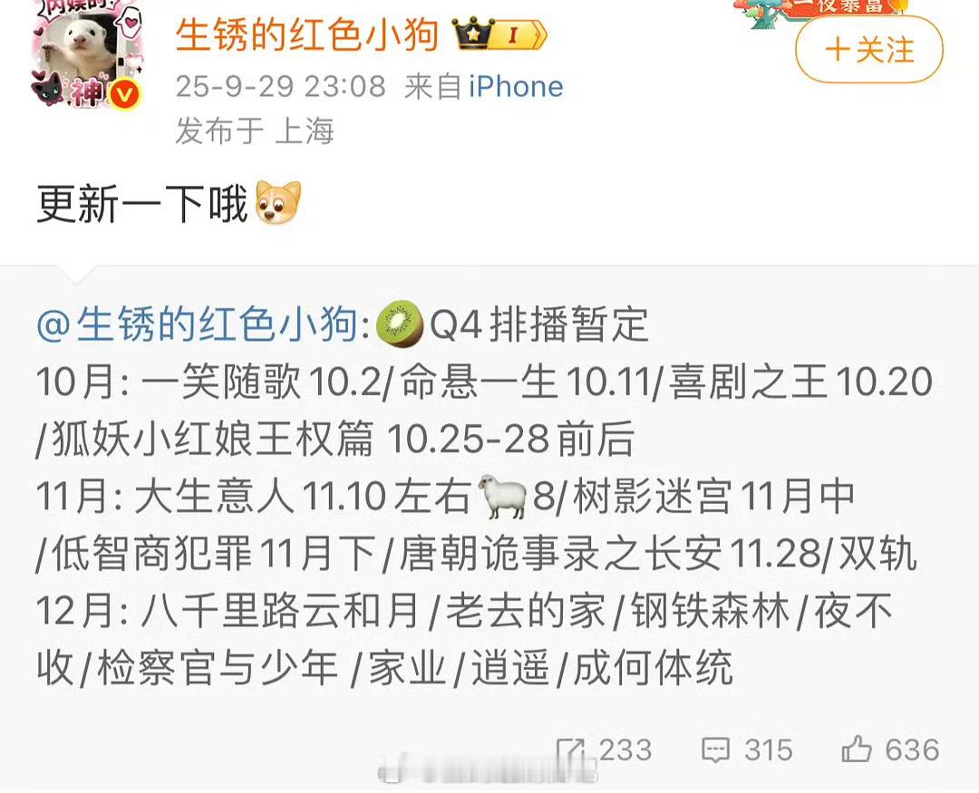 🥝最新排播总结,年底在冲kpi吗?第四季度好多剧啊!有没有你想看的?[拜托]