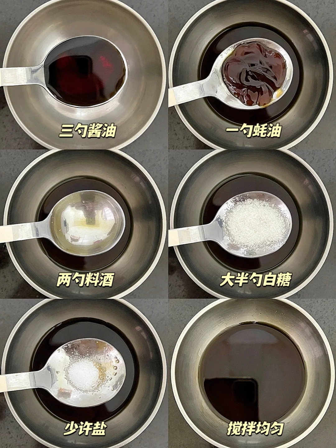 🥃酱汁:三勺酱油+一勺蚝油+两勺料酒+大半勺白糖+少许盐