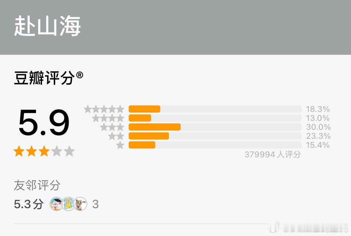 成毅赴山海豆瓣开分5.9评分人数38万三⭐️四星占比最高高了低了?
