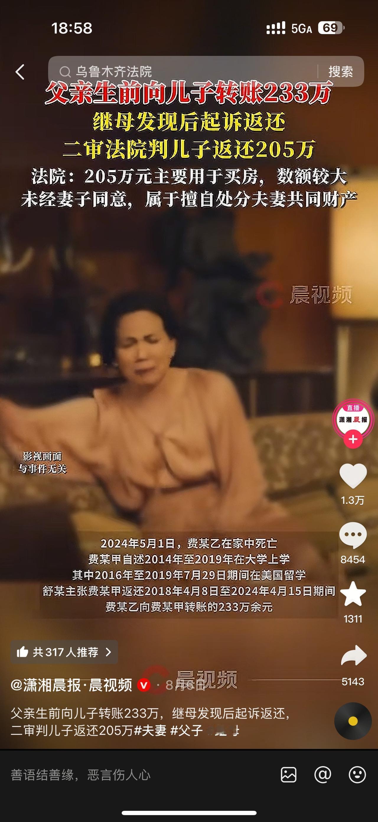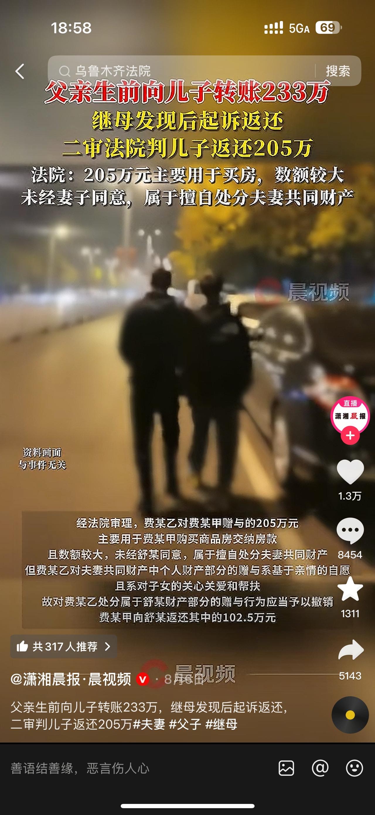“太荒唐了!”新疆乌鲁木齐,一男子生前给儿子转账233万元,用于儿子学业与购房生