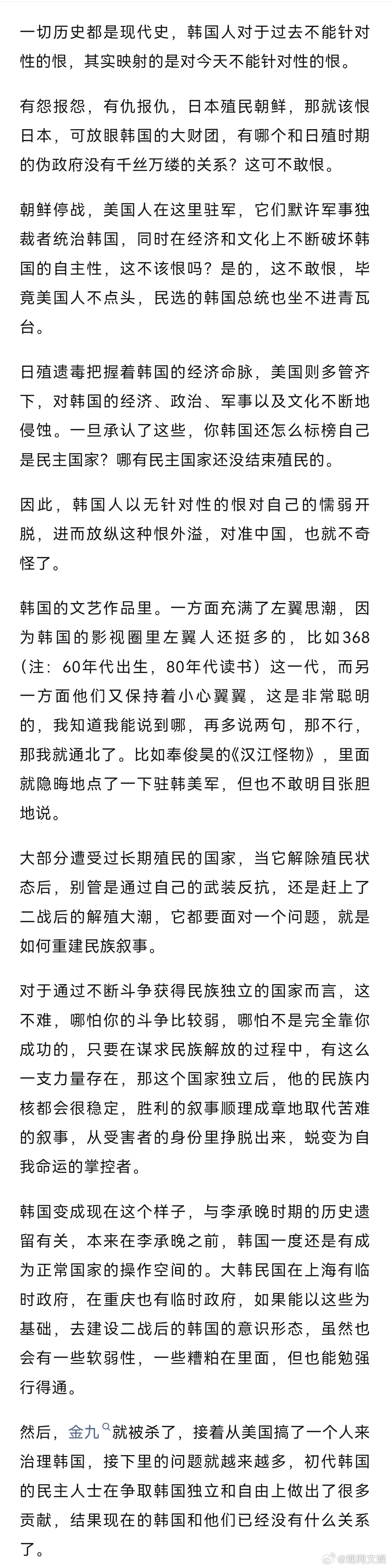一切历史都是现代史,韩国人对于过去不能针对性的恨,其实映射的是对今天不能针对性的恨。