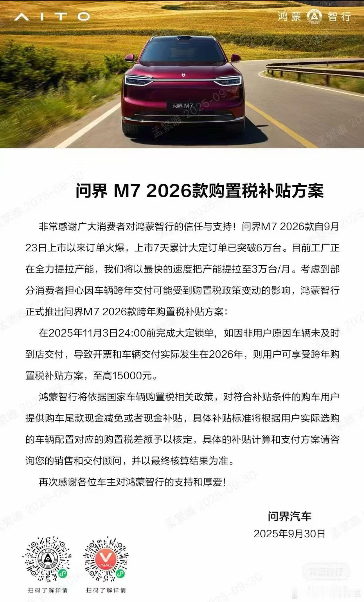 明天放假了,祝大家双节快乐哦问界M7上市首周大定破6万