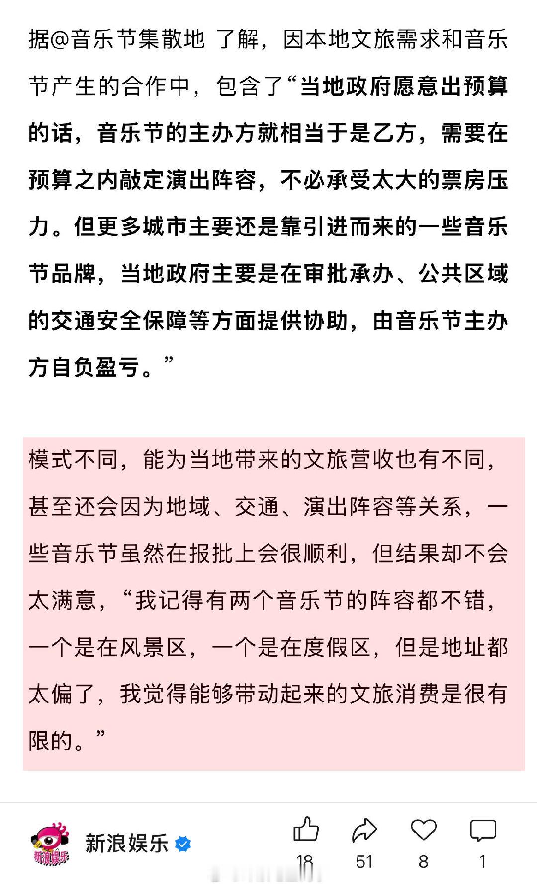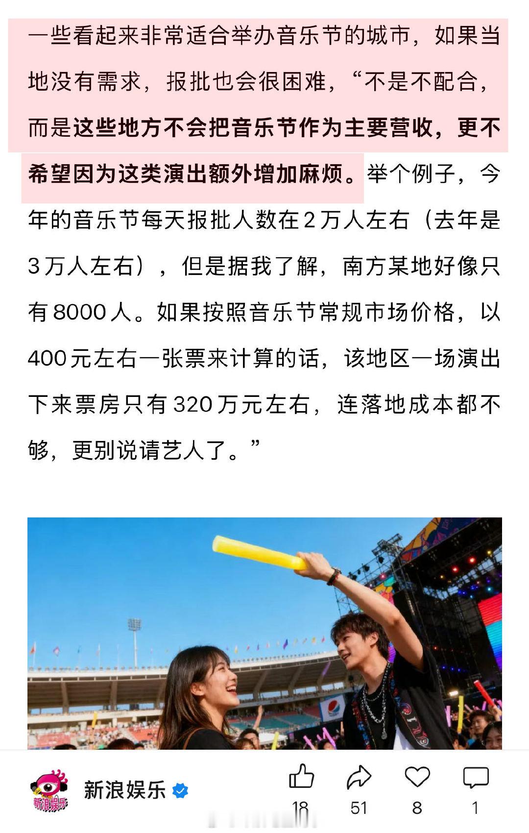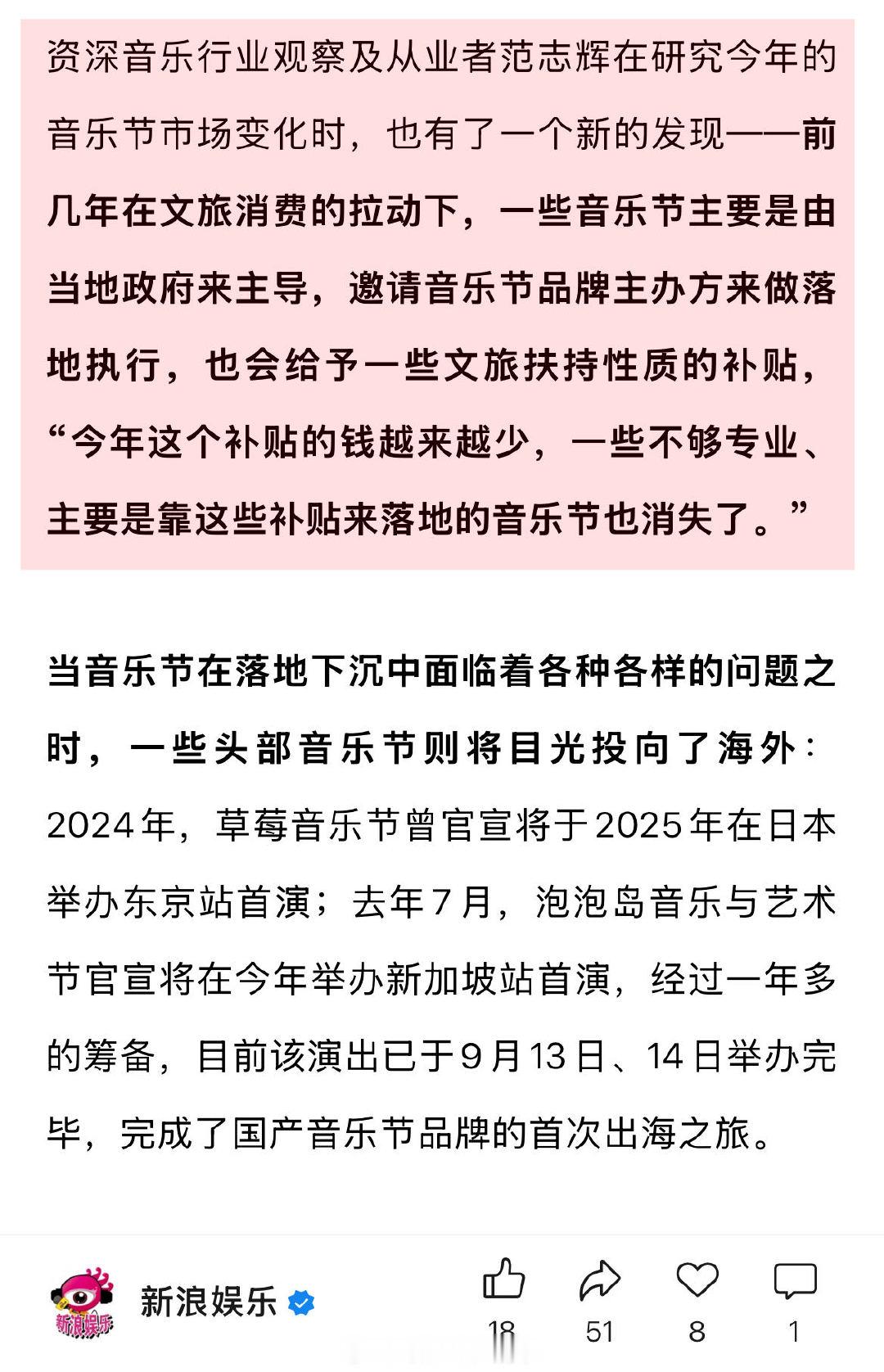 音乐节遍地开花是好事吗 业内谈流量艺人加盟音乐节 据了解,前几年在文旅消费的拉动下,一些音乐节主要是由当地政府来主导,邀请音乐节品牌主办方来做落地执行,也会给予一些文旅扶持性质的补贴,“今年这个补贴的钱越来越少,一些不够专业、主要是靠这些补贴来落地的音乐节也消失了。”娱理独家↓