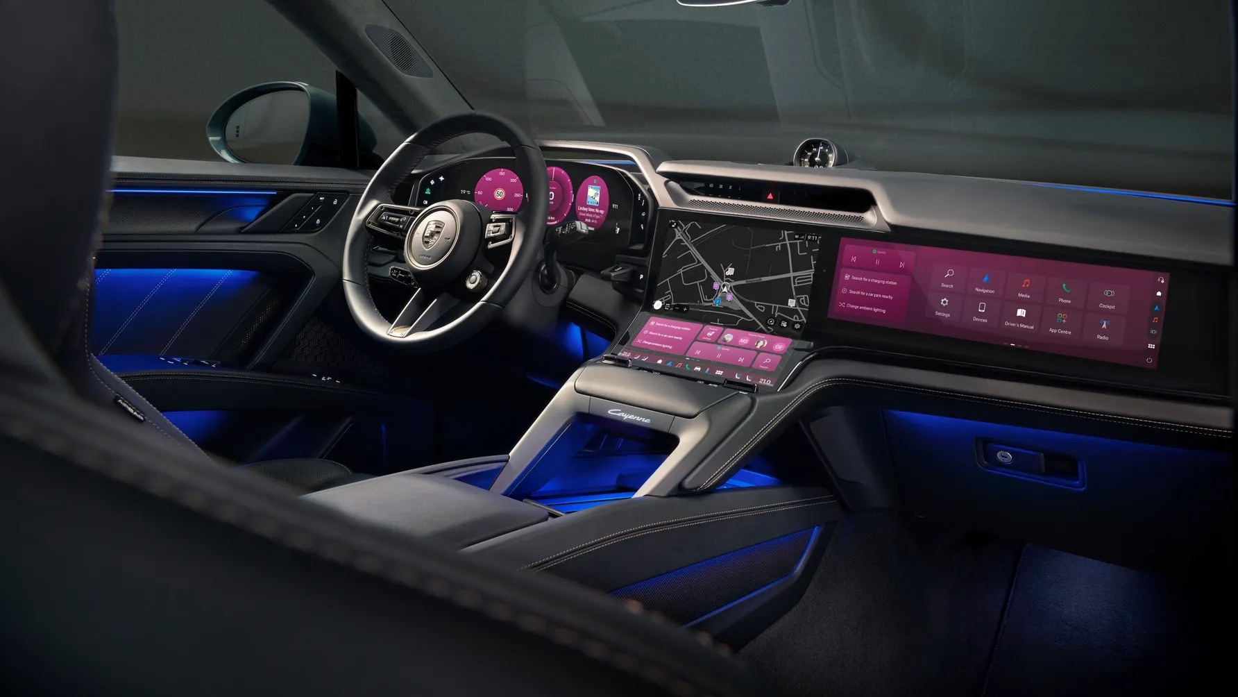 保时捷纯电卡宴外观貌似是挺丑的,但内饰别有风味,结构很有创新性,用了曲面屏,整体的画风还是很保时捷,但有新鲜感和科技感,感觉挺不错。