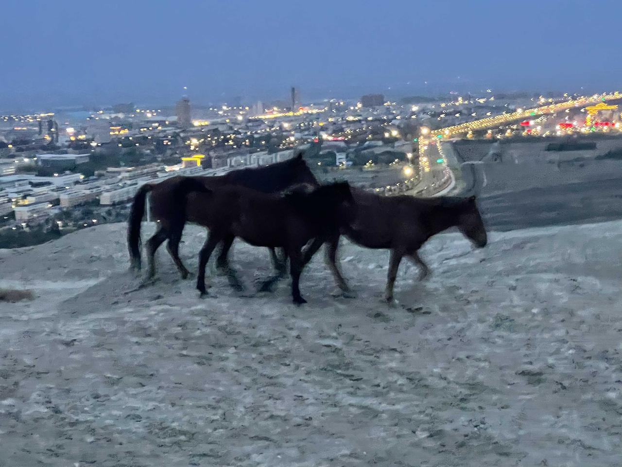 假日新疆(15)独山子泥火山:独山子市主要景点有泥火山与独山子大峡谷等!从大峡谷回来,不知劳苦地又爬上了泥火山!! 有两个喷出口,口内是粘稠的泥浆,不停的向外翻着泥泡,其中一个还发出咕咕的声响。算不上一个景点,但却是大自然的奇观!不去很遗憾,去了也遗憾! 摸黑下山,市内已是万家灯火,晚餐“肖克新疆全牛汤锅”!独山子为克拉玛依市辖区,附拍几张市景!!