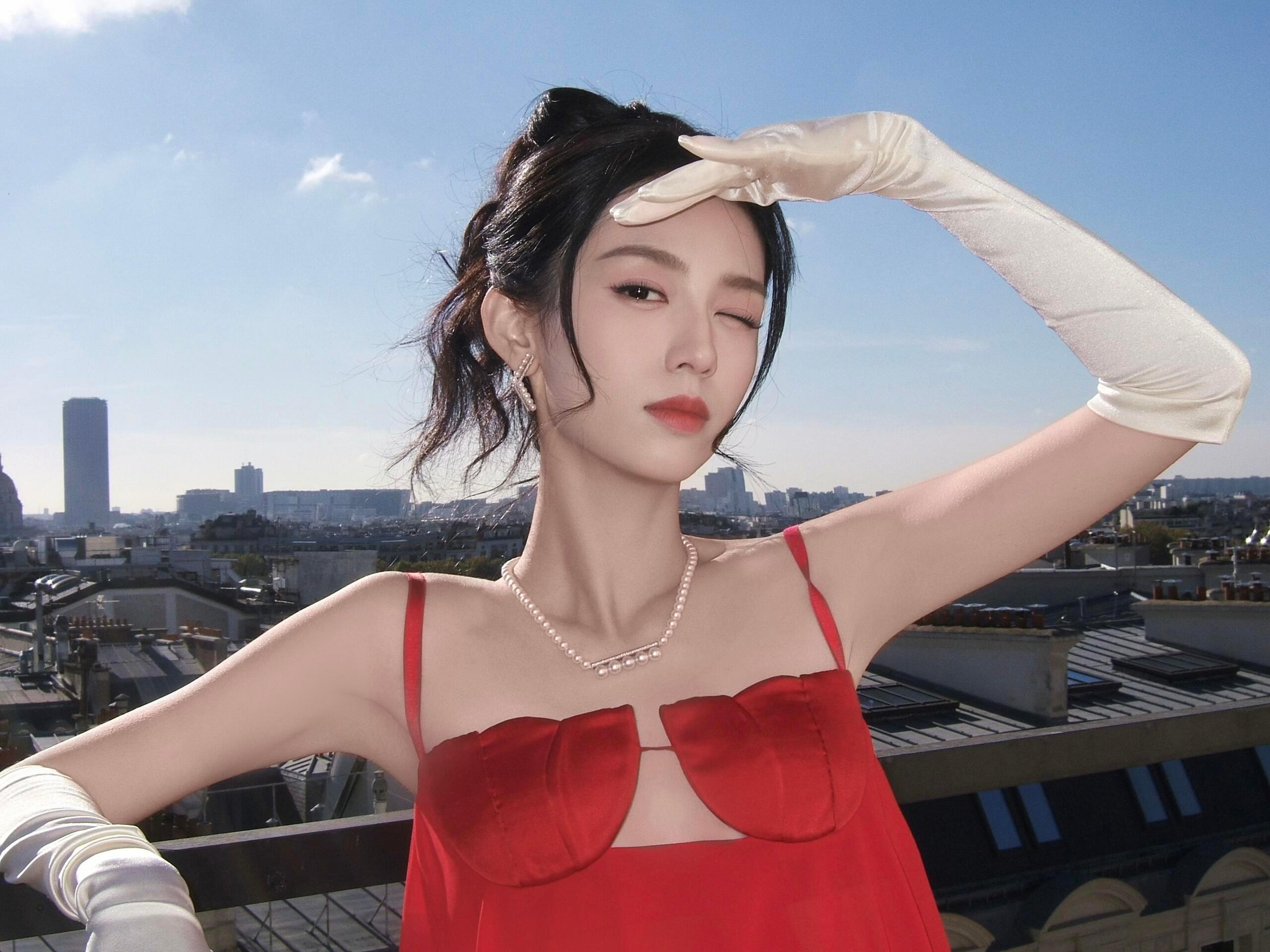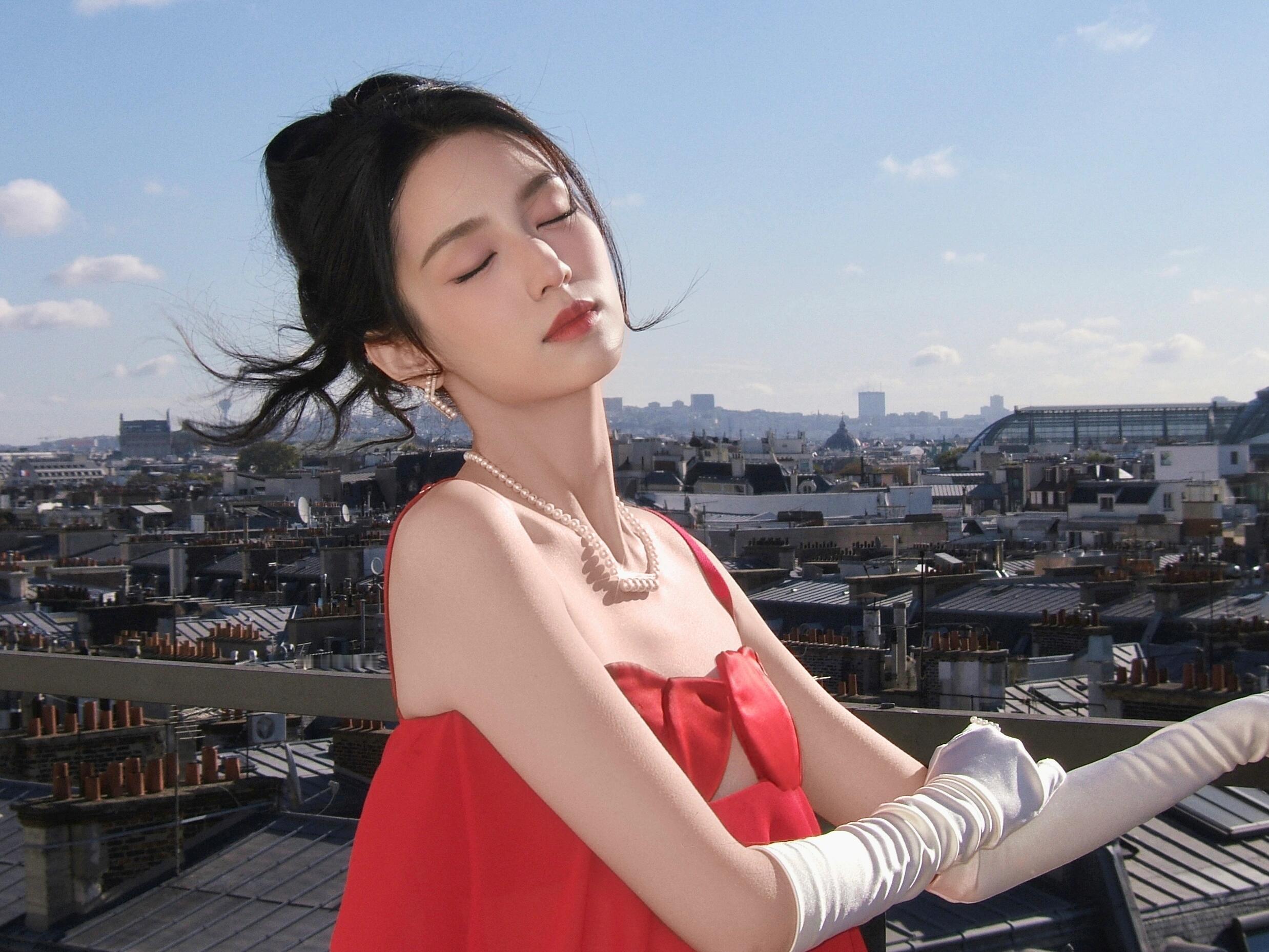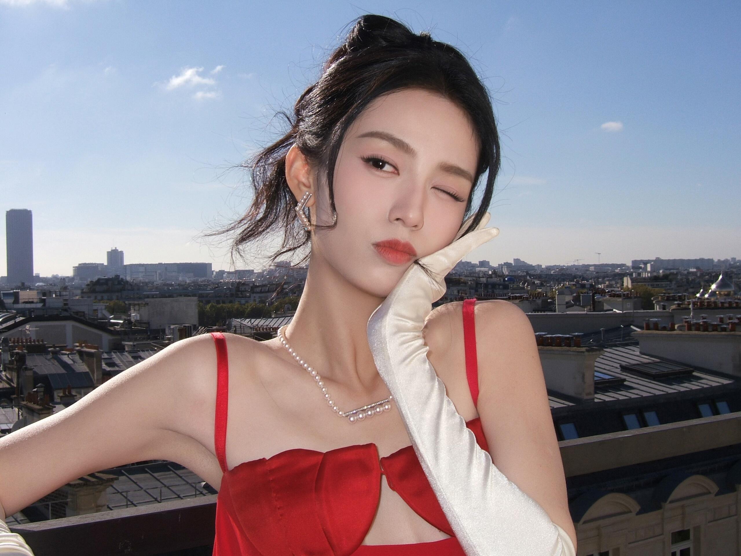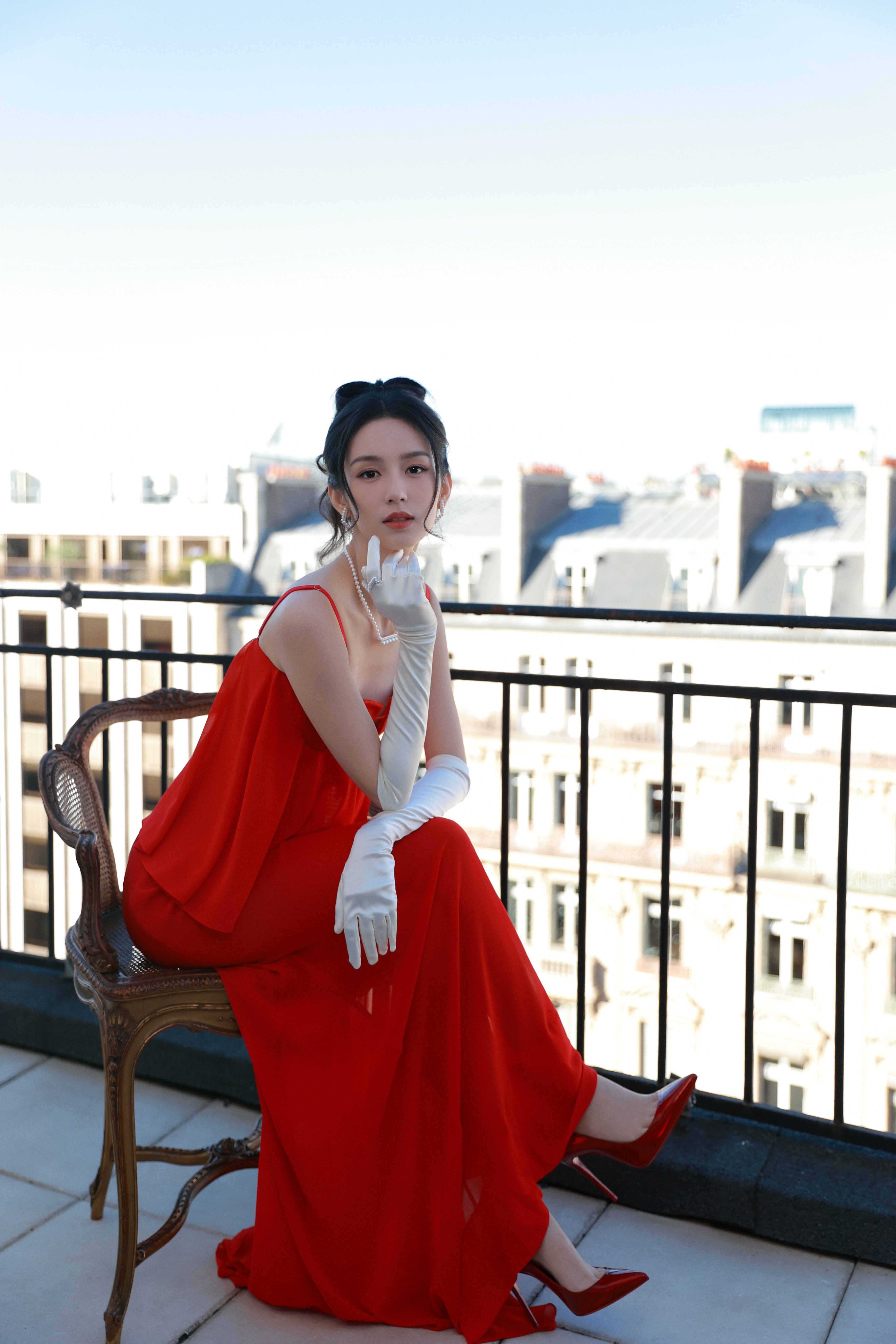 周也巴黎时装周出图,明媚的红玫瑰🌹