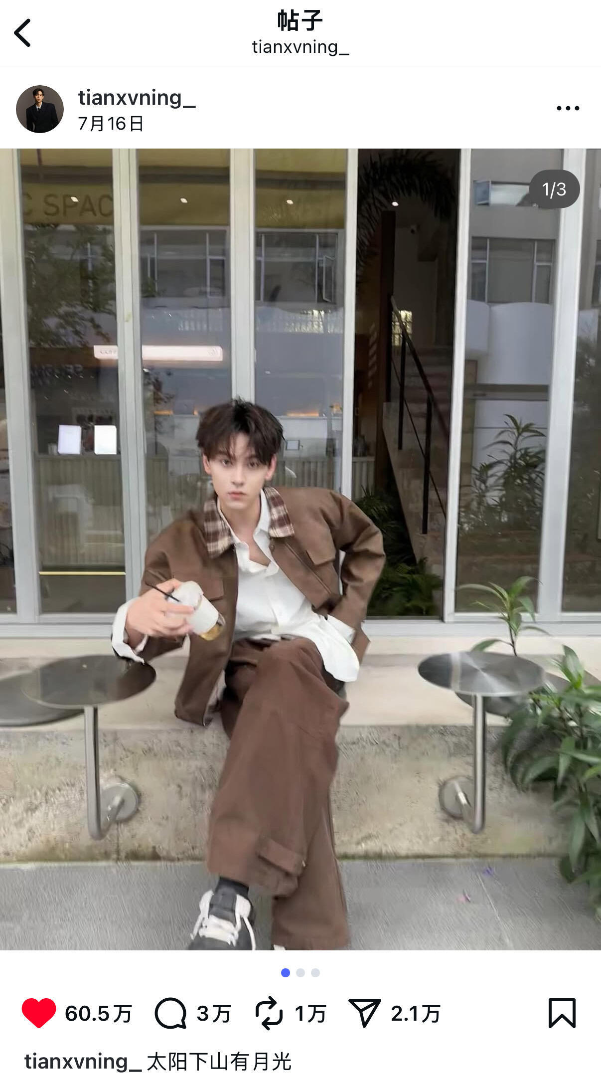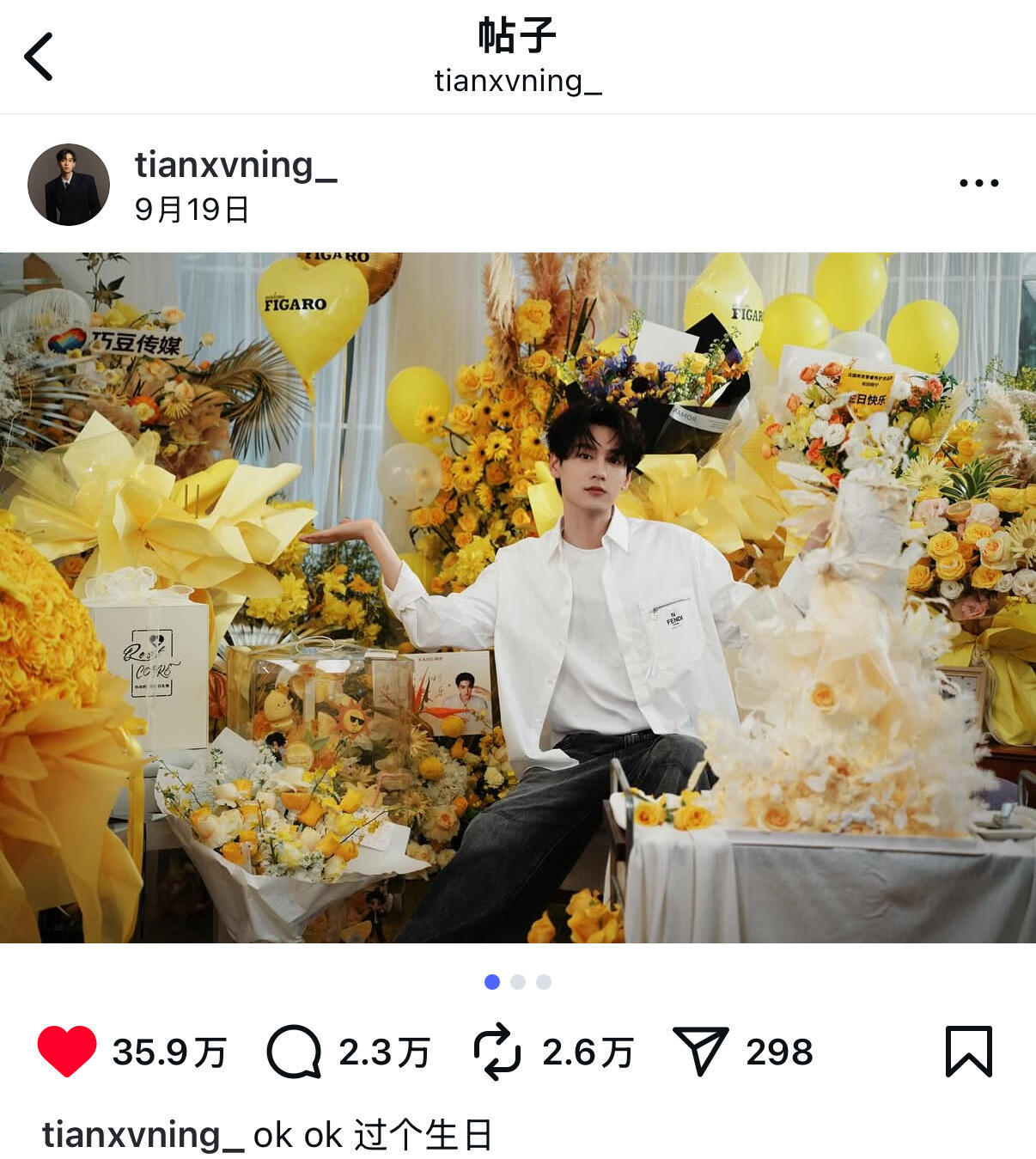 田栩宁 恭喜田栩宁Instagram粉丝在十月的第一天突破百万!谁敢想只发了11个帖子,每个帖子赞均20w+,最高60w+🔥 ,大部分帖子评论均1.5w+,田栩宁海外人气当之无愧的TOP🔥十月也是金色的,未来期待更多的百万!!祝田栩宁今后越来越好~十一刷到宝了