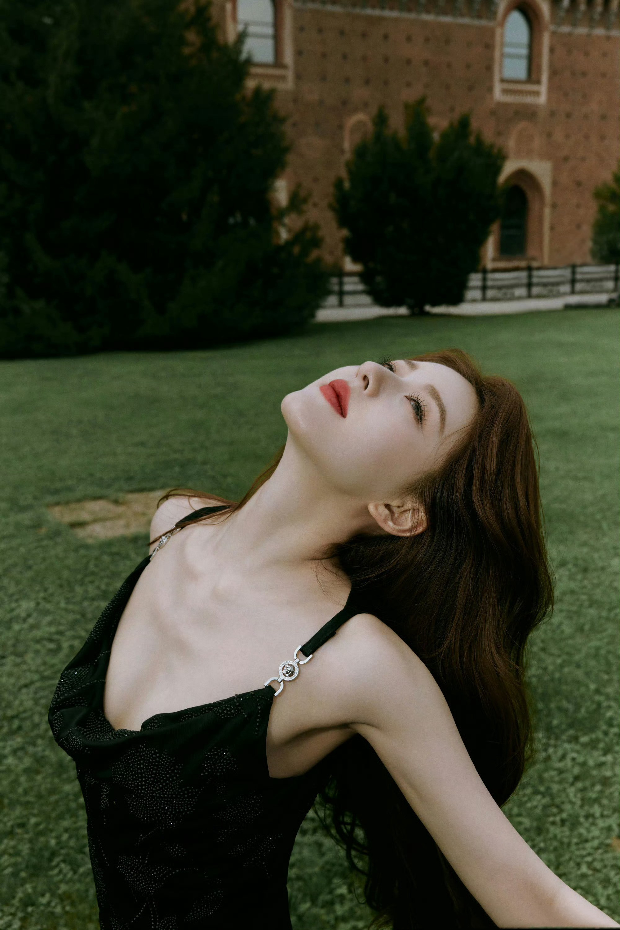 赵露思这组图,黑色吊带裙,很清冷且甜美